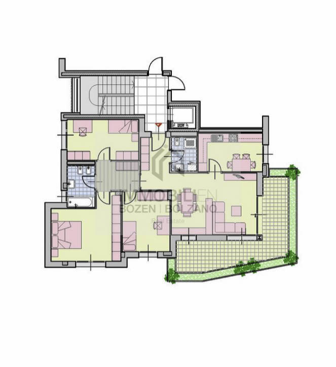 Vendesi bellissimo quadrilocale nel centro di Bolzano. L'appartamento si trova al 3° piano di un edifico che ha la classe energetica “A” e ha una superficie di circa 136,85 mq. È esposto verso sud ed è composto di: ingresso con corridoio, cucinino, soggiorno, 3 camere da letto, 2 bagni e ampio terrazzo.