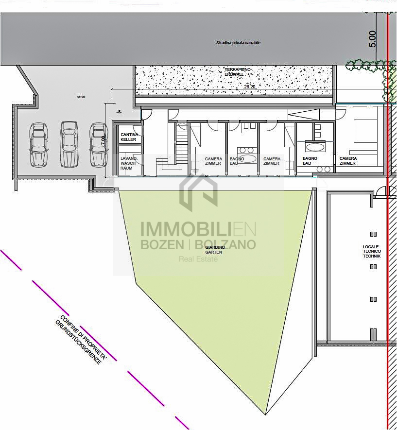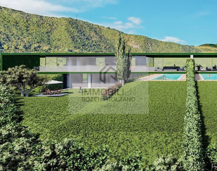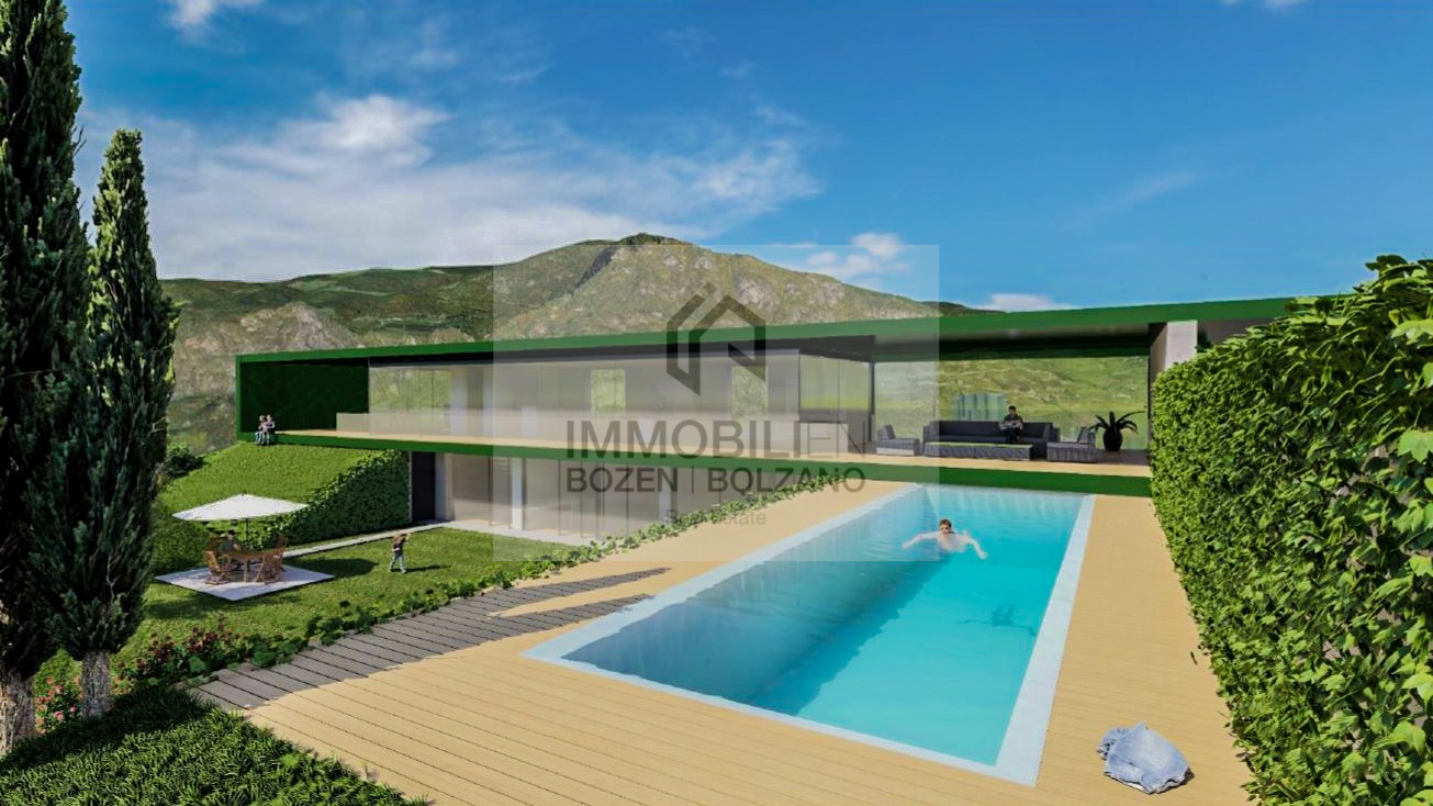 La villa lussuosa si trova a Bolzano Sud, in una posizione tranquilla e incontaminata, immersa nel verde. Fa parte di un progetto di nuova costruzione di alta qualità composto da due ville autonome costruite una accanto all'altra e si estende su due piani. È esposta a sud-ovest e possiede una vista libera. Al piano superiore si trovano un ampio soggiorno, una grande cucina abitabile, un bagno di servizio, una dispensa e la scala che conduce al piano inferiore. Le finestre a tutta altezza conferiscono a questa stanza un clima molto piacevole e forniscono molta luce naturale. Al piano superiore si trovano anche 2 grandi terrazze che invitano al relax. Da qui si ha anche accesso diretto alla piscina privata.