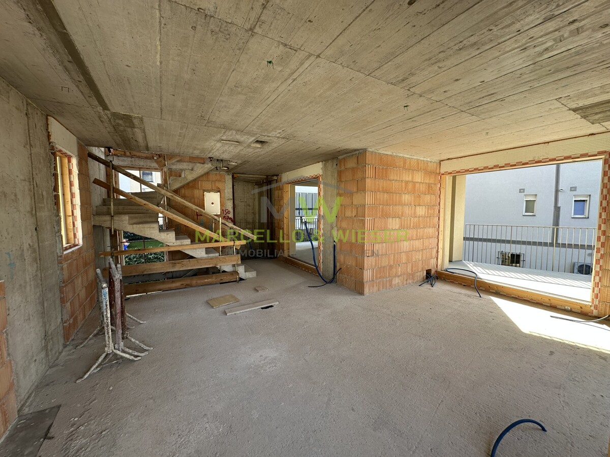 soggiorno, scala, bagno con finestra, terrazza (ca.29m²) e un balcone (ca.6m²)