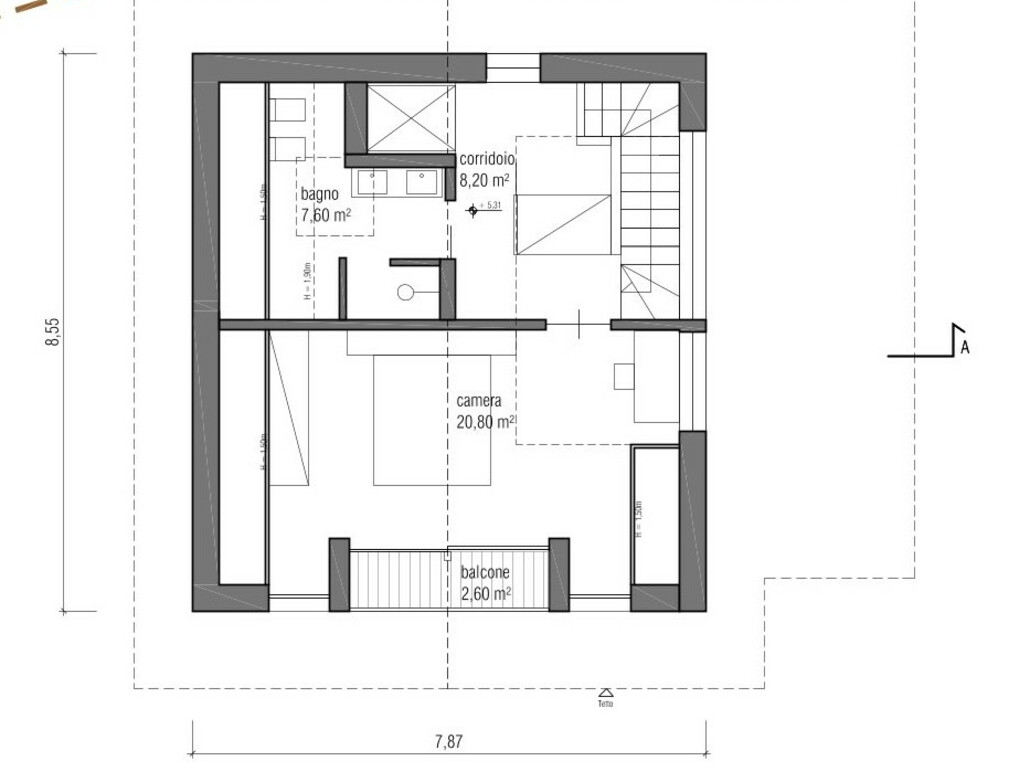 - Livello 2: ampia camera da letto con bagno e cabina armadio, balcone.