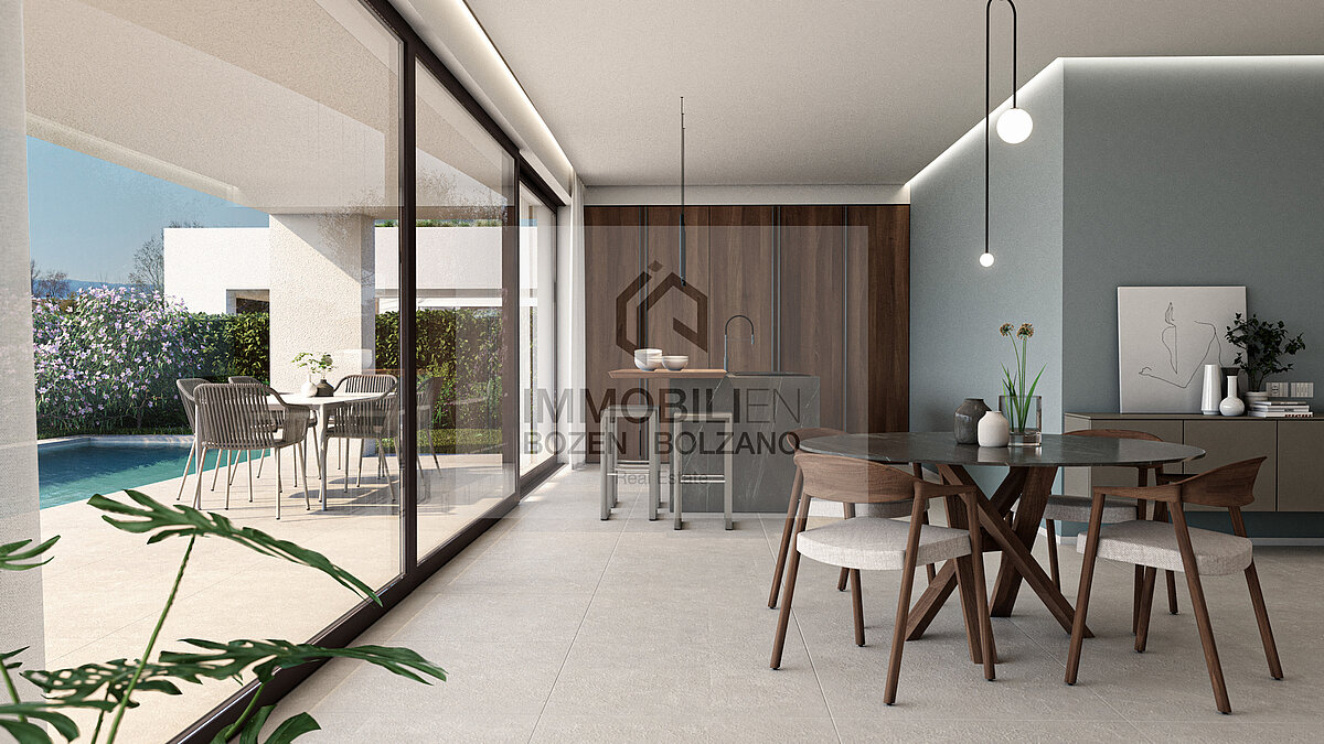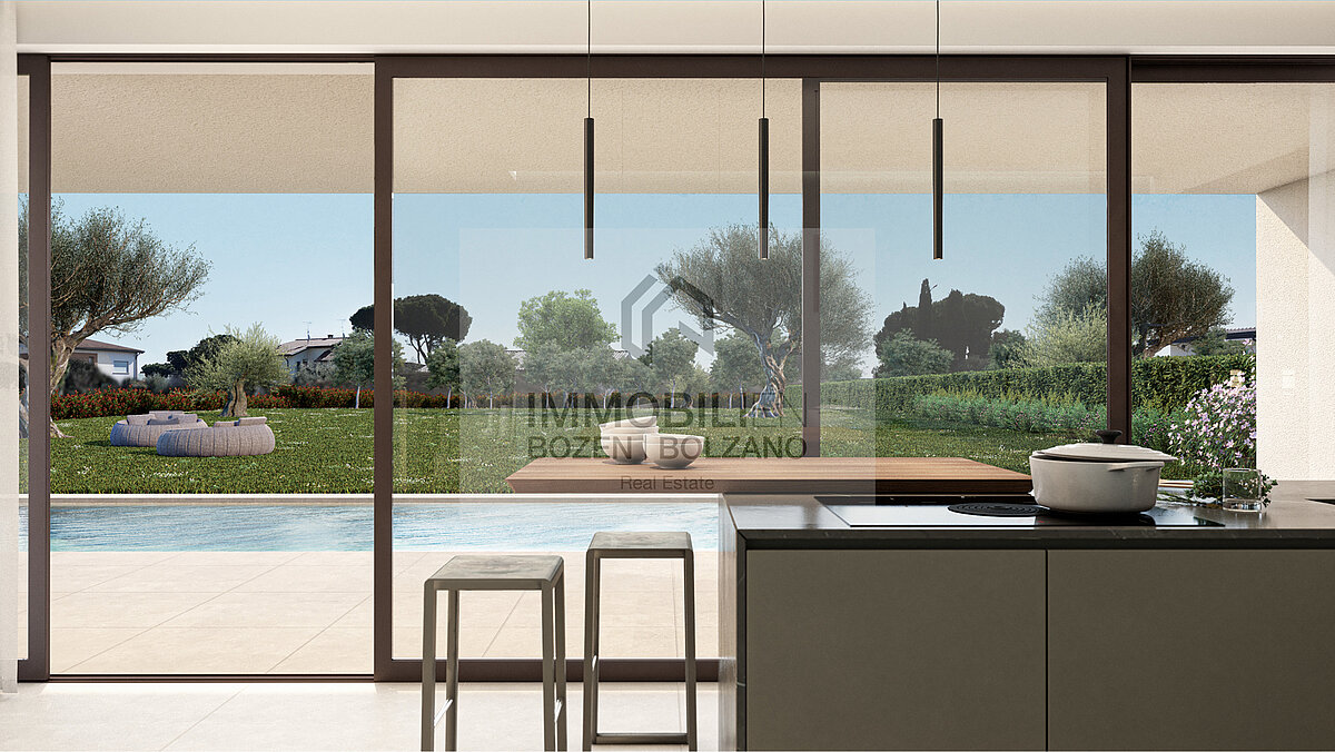 La villa dispone di un ampio giardino, di una piscina privata e di un accesso privato alla spiaggia, dove ogni villa ha il proprio scomparto/deposito con serratura, per lettini, attrezzature varie e da nuoto ecc. La villa si sviluppa su un piano ed ha una superficie totale di 160,34 m². Sono costruiti secondo lo standard delle case clima "A Nature". La villa è composta da un ampio soggiorno con sala da pranzo e cucina, 3 camere da letto e 3 bagni. Dal soggiorno si accede tramite una porta scorrevole direttamente al terrazzo, ideale per godersi un piacevole brunch o un aperitivo sotto il cielo stellato. C'è anche l'ampio giardino e la piscina, che invita a rinfrescarsi. Tutte le informazioni sono riportate indicativamente e possono essere soggette a modifica.