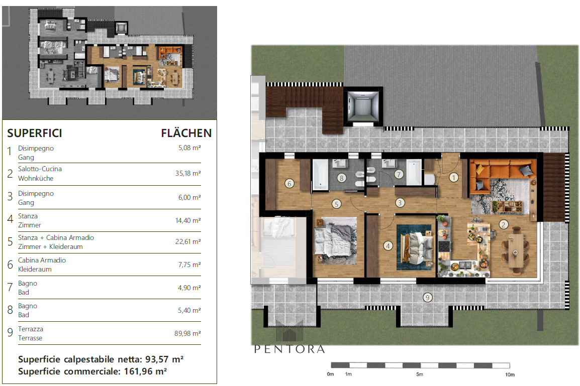 In uno dei quartieri più belli di Merano sorgono moderni appartamenti di nuova costruzione, che si distinguono per la spaziosa distribuzione degli ambienti e le ampie terrazze.