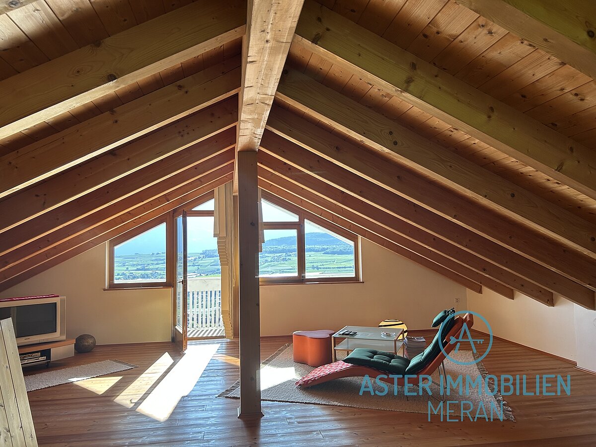 Un'esclusiva terrazza coperta sul tetto con vista sull'Überetsch.