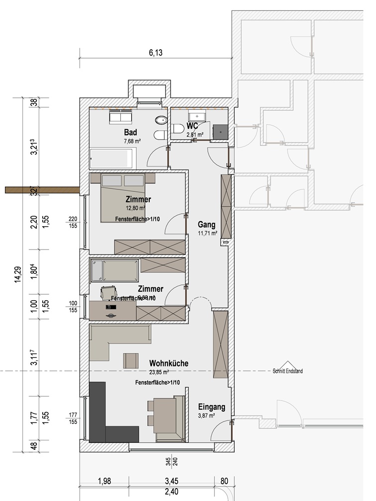 In una comoda posizione a San Pietro - Pizack, è in vendita un immobile (CE-G) che può essere trasformato in un appartamento convenzionato. A tale scopo è disponibile una superficie netta di circa 75 m² al piano terra, con orientamento principale verso sud.
