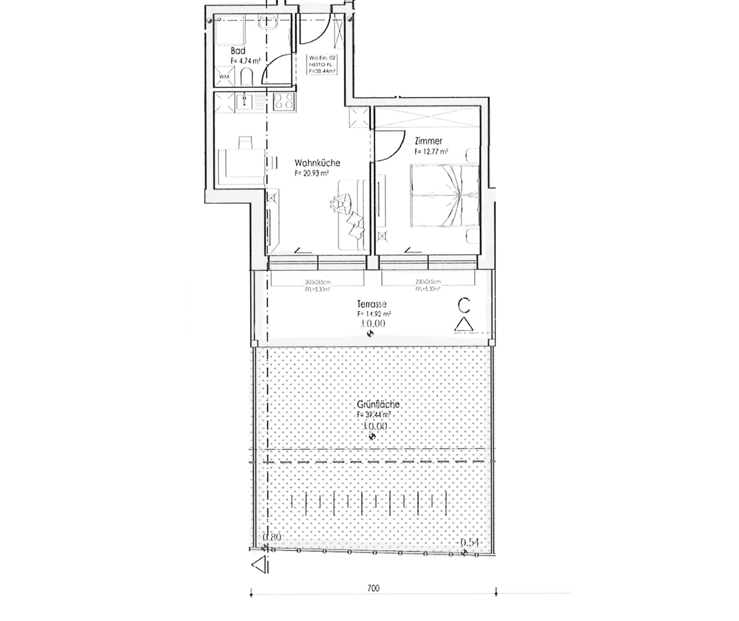 L'appartamento ha una superficie lorda di circa 46,86 m² e un'area verde privata di 39 m², che invita a trascorrere ore rilassanti all'aperto, sia dopo una giornata di sci nel Paese delle Meraviglie invernali che dopo una lunga escursione sulle montagne circostanti. Un vano cantina di circa 6,8 m² è incluso nel prezzo di acquisto e offre ulteriore spazio di archiviazione.