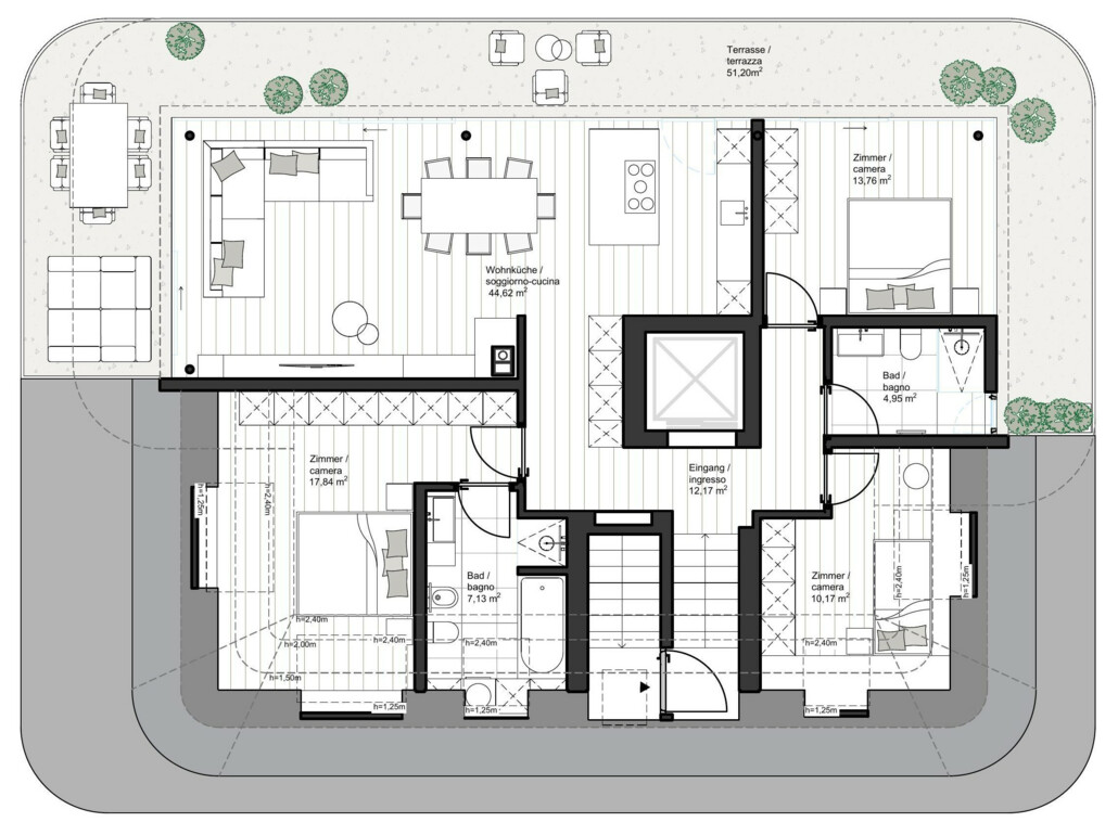 È già presente una moderna domotica KNX, che consente un controllo confortevole e orientato al futuro dell’illuminazione, delle schermature solari e di ulteriori funzioni.