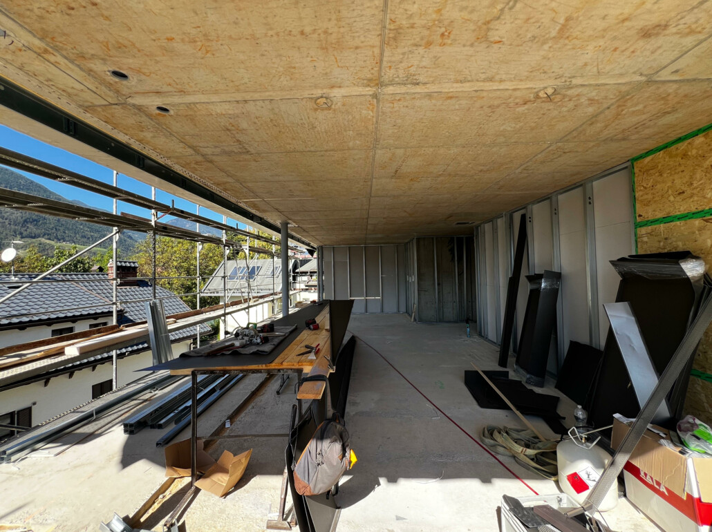 Nel soggiorno è già predisposto un condotto per camino fino oltre il tetto, rendendo possibile senza difficoltà la realizzazione di un camino o di una zona fuoco personalizzata.