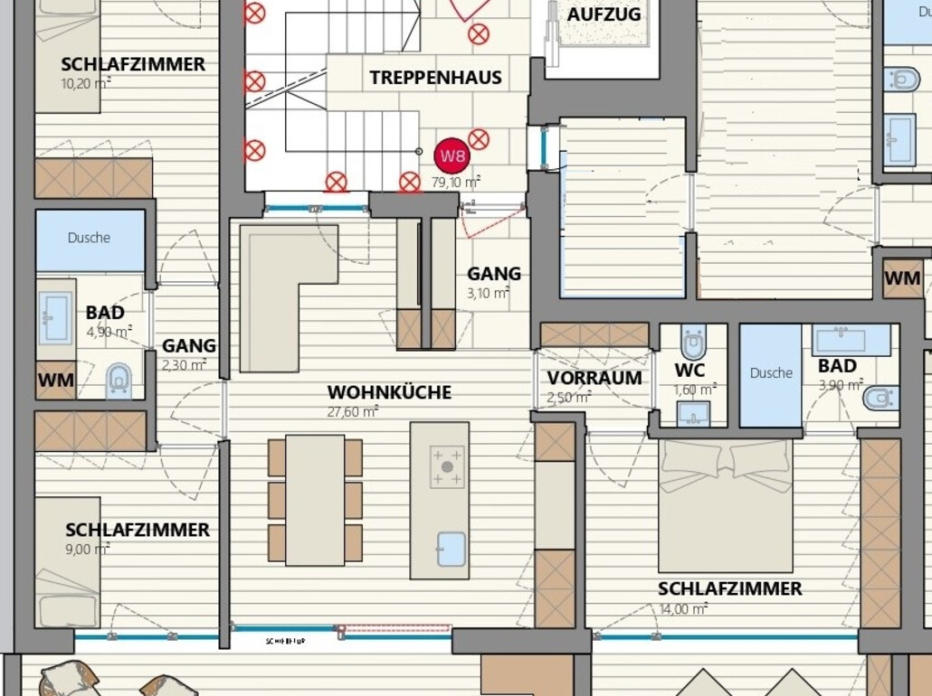 W8: Proponiamo in vendita nuovo quadrilocale con terrazza che è composto da: ingresso, soggiorno con cucina, 3 stanze da letto, 2 bagni e 2 terrazze.