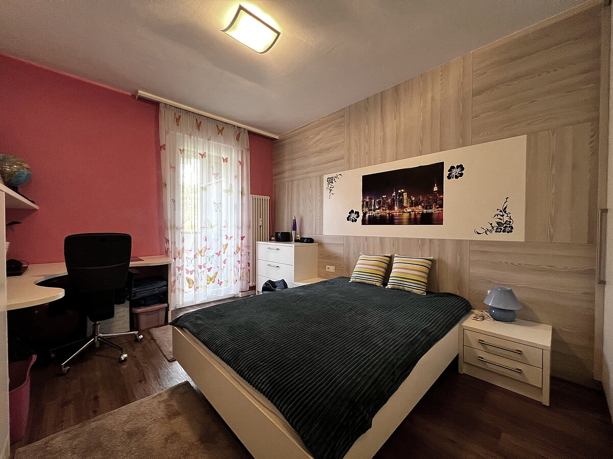 Der Südbalkon gibt den Blick bis zum Rosengarten frei. In unmittelbarer Nähe findet man alle Geschäfte und den Grieser Platz, die Bushaltestelle ist ebenso schnell erreichbar. Ein Keller und eine ordentliche Garage mit automatisiertem Kipptor runden das Angebot ab.