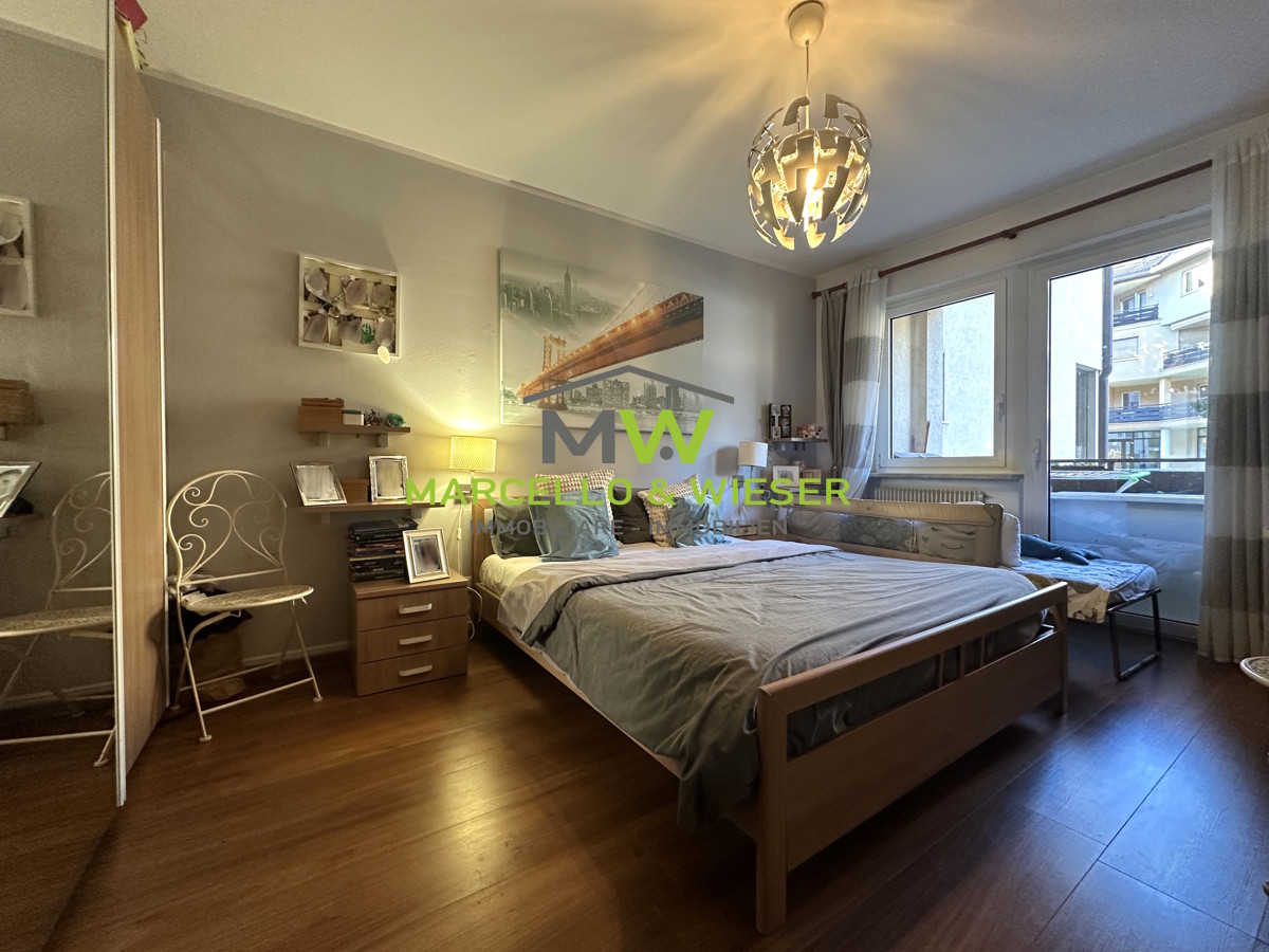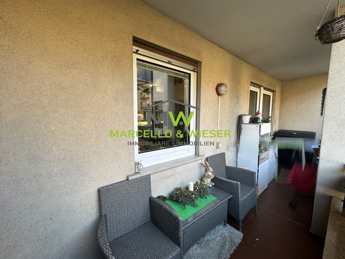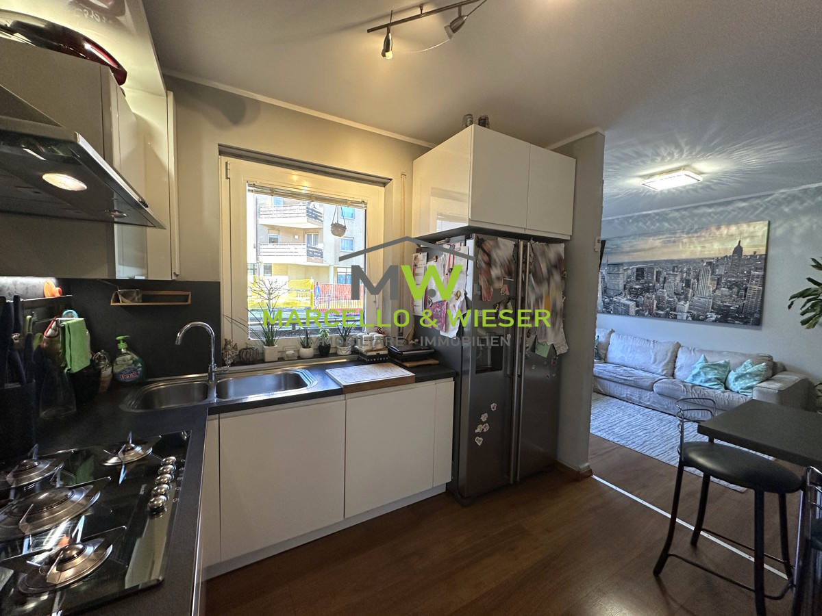 Eingang, Wohnzimmer - Küche mit direktem Balkonzugang, ein zweiter Balkon, 2 Schlafzimmer und ein Badezimmer mit Fenster