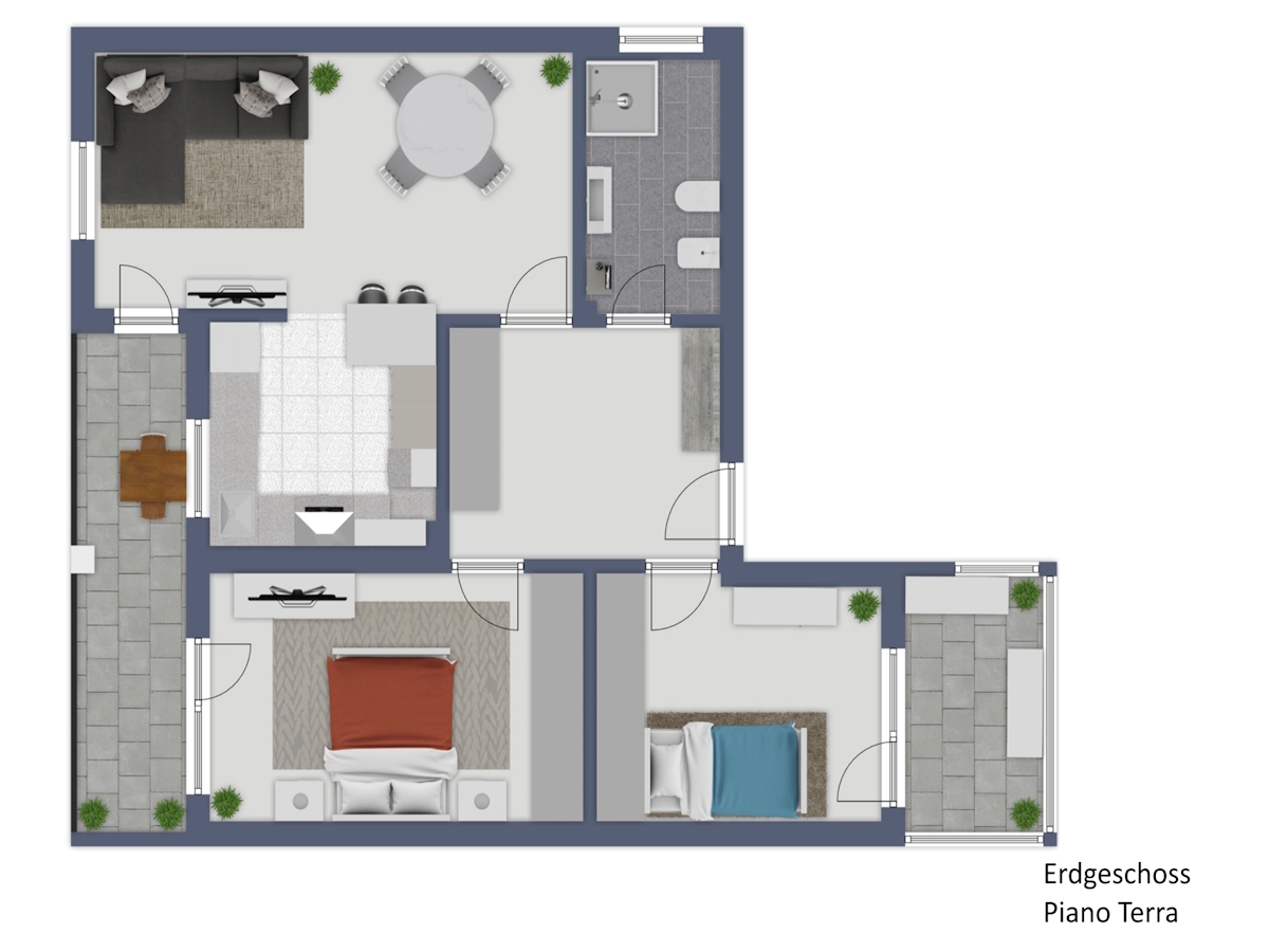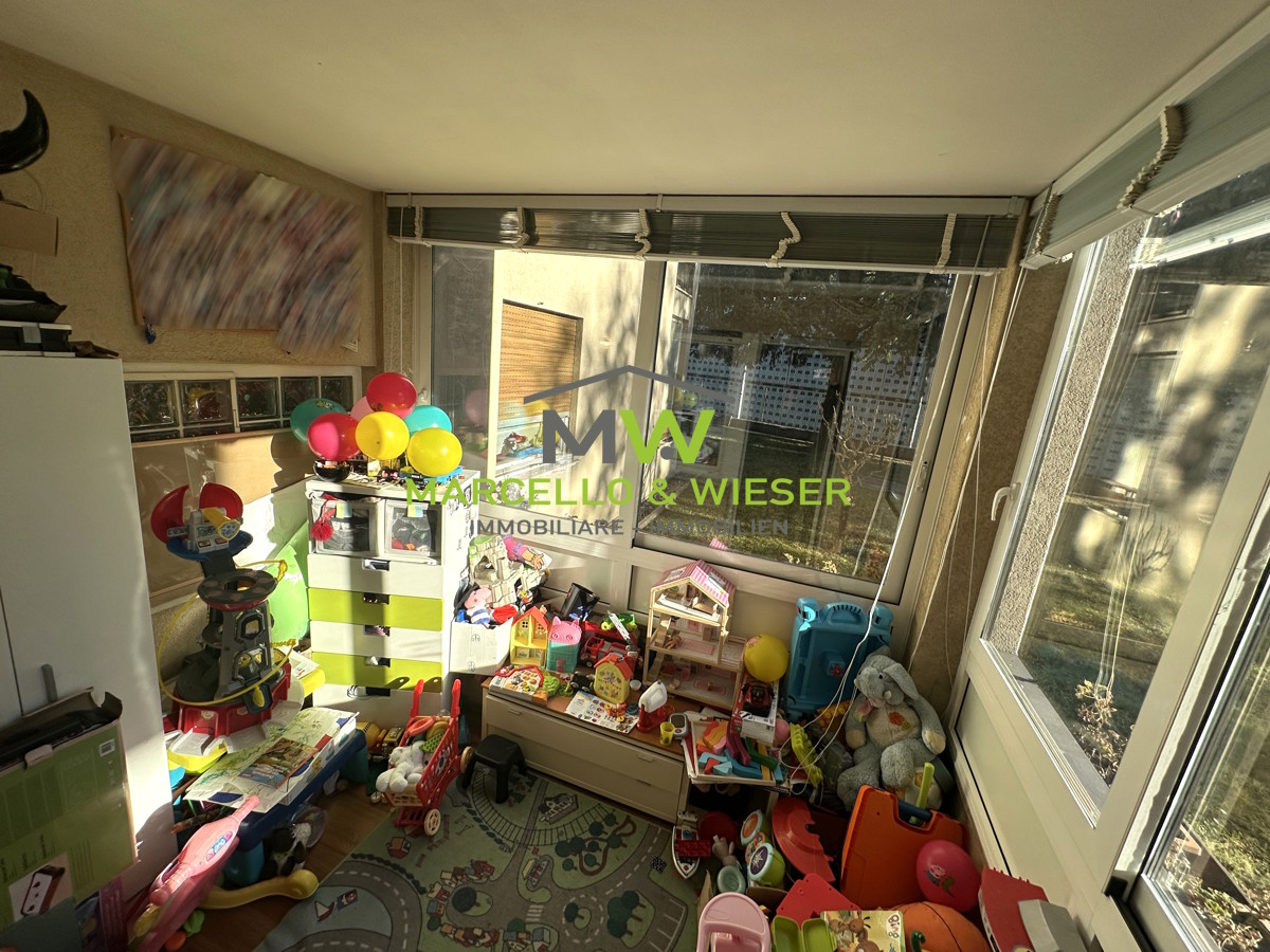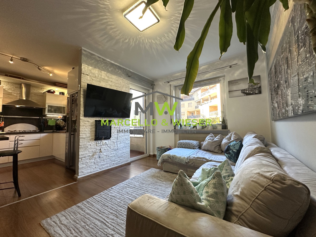 Eingang, Wohnzimmer - Küche mit direktem Balkonzugang, ein zweiter Balkon, 2 Schlafzimmer und ein Badezimmer mit Fenster