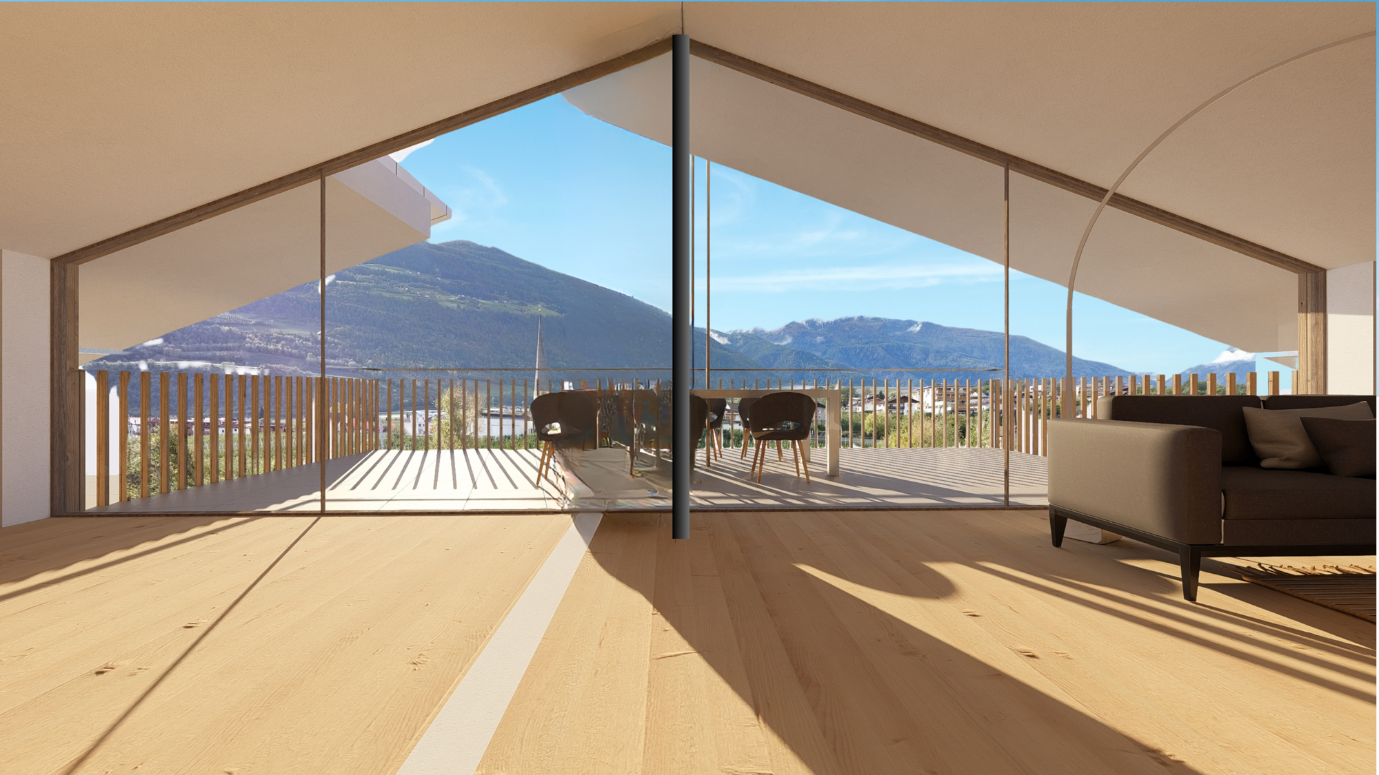 Ganz oben, ganz allein – das Penthouse „The Peak“ krönt die Wohnanlage Mondschein in Kastelbell mit einem unvergleichlichen Wohngefühl. Der Aufzug führt direkt in Ihre Wohnung, wo sich Ihnen auf über den Dächern zwei großzügige Loggien und eine Südterrasse mit Weitblick öffnen.