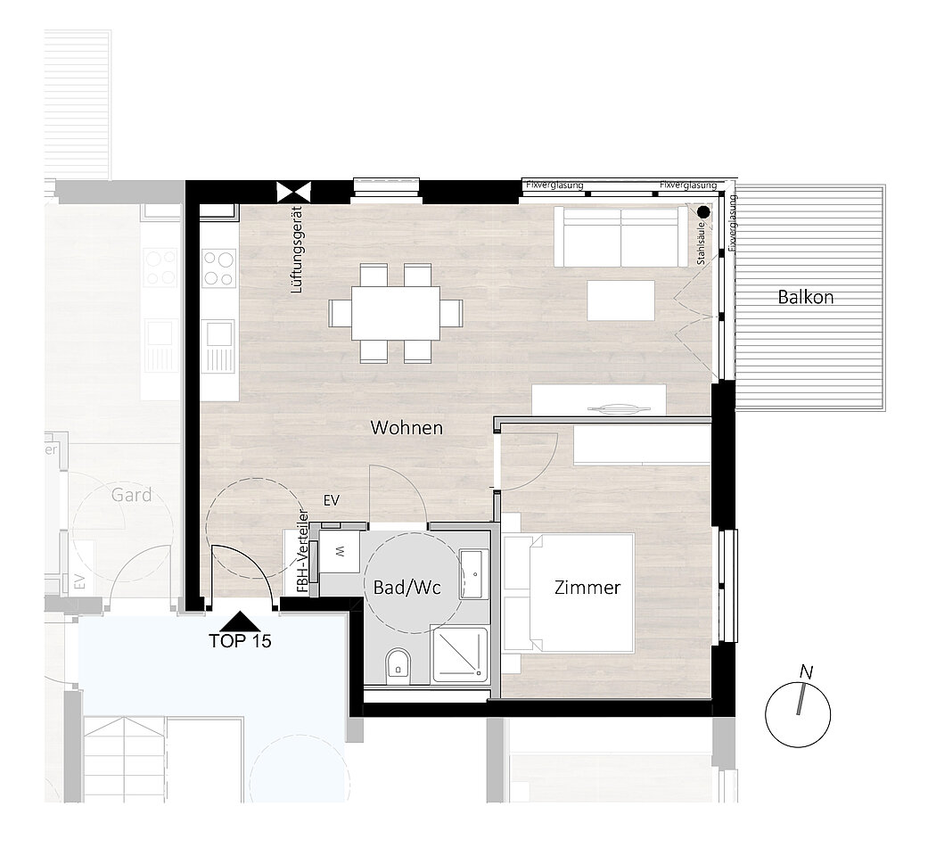 Diese Zweizimmerwohnung besteht aus einer geräumigen Wohnküche, einem Schlafzimmer und einem Badezimmer. Ein nach Osten ausgerichteter Balkon vervollständigt die Wohnung. Ein Keller im Untergeschoss ist ebenfalls im Preis inbegriffen. Stellplätze in der Tiefgarage sind ab 25.680 € erhältlich. Die angegebenen Preise sind für Anleger und verstehen sich zuzüglich Umsatzsteuer. Preise für Eigennutzer auf Anfrage.