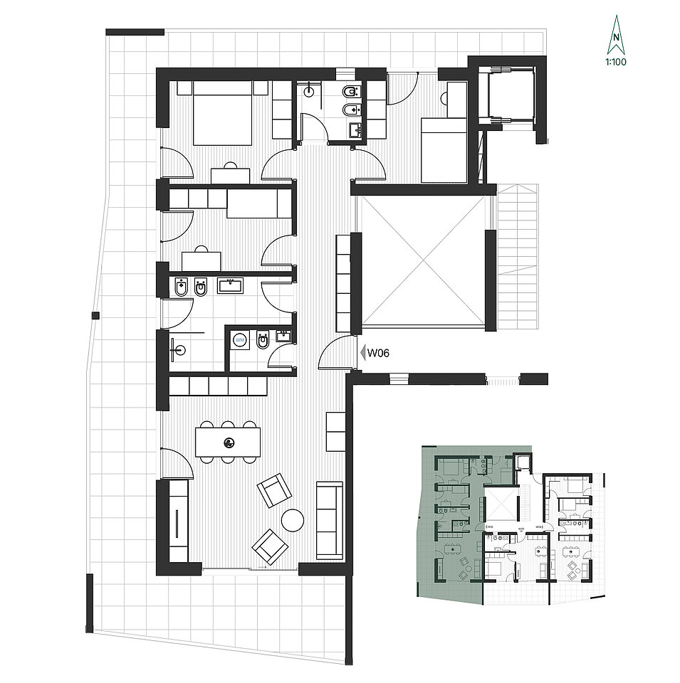 Diese Vierzimmerwohnung besteht aus einer Wohnküche, drei Schlafzimmern, zwei Badezimmern, einem Tages-WC, einer großen Terrasse und einem geräumigen Keller. Eine Garage kann separat erworben werden.