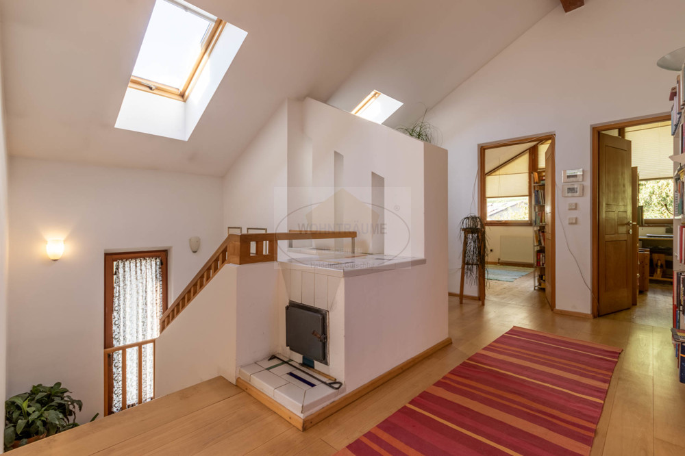 Über die Außentreppe gelangt man dann in die sehr edle und gemütliche Familienwohnung im 1. Obergeschoss, in welchem sich die sehr geräumige Küche mit Speis und Esszimmer, Wohnzimmer mit Südbalkon und Gäste-WC befinden. Über die intern verbundene Stiege gelangt man ins Dachgeschoss, in welchem vier Schlafzimmer, ein Südbalkon und das Badezimmer untergebracht sind.