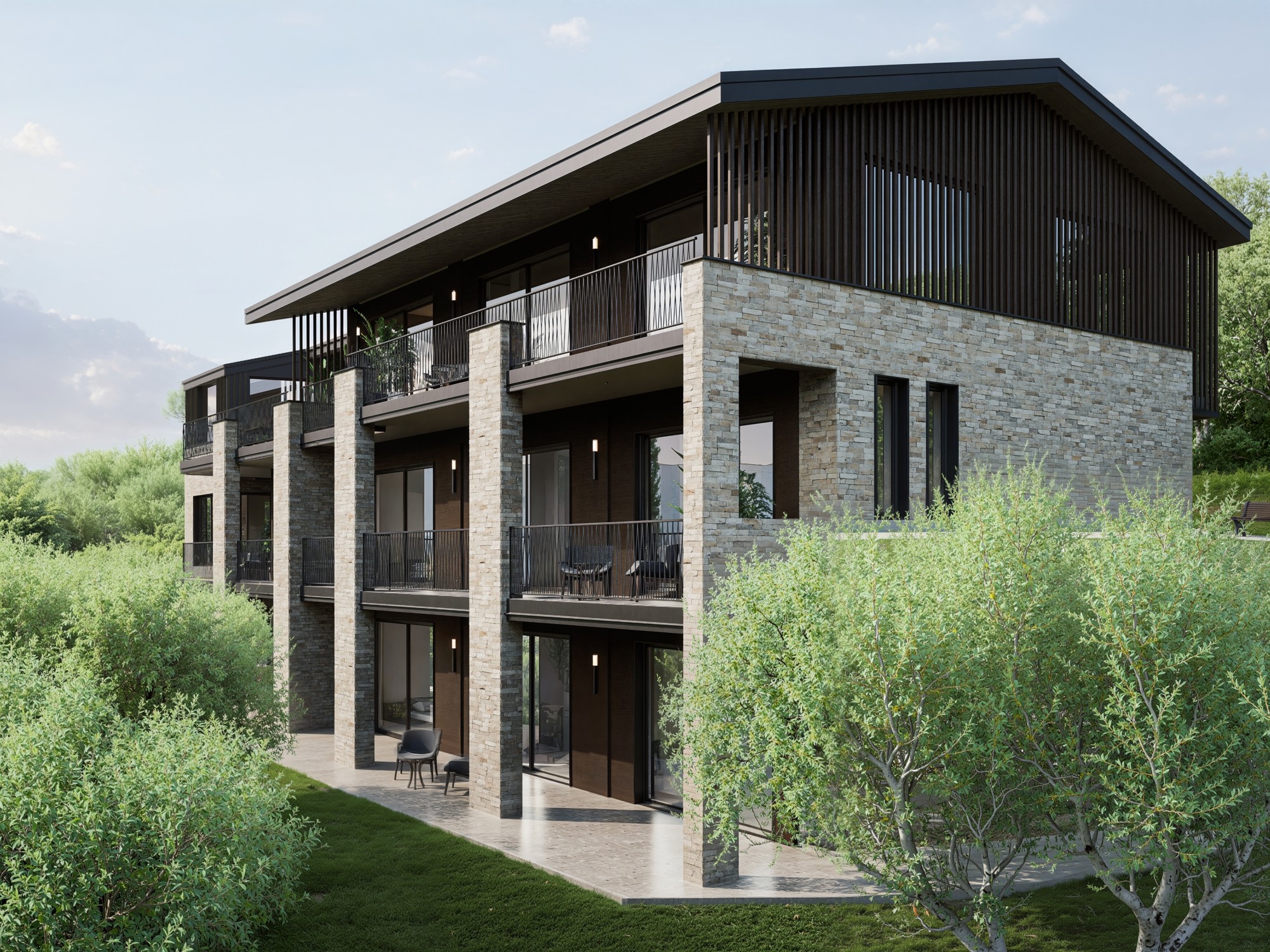 Die großzügigen Terrassen, die von allen Schlafzimmern zugänglich sind, laden zu entspannten Stunden im Freien ein – eingebettet in die Ruhe und Schönheit der Gardaseelandschaft.