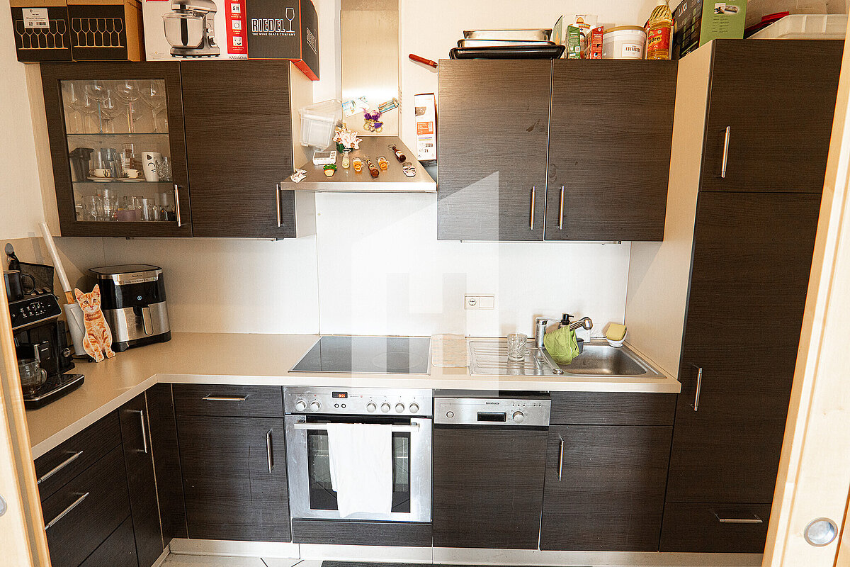 Helle Wohnküche mit Zugang zum Balkon