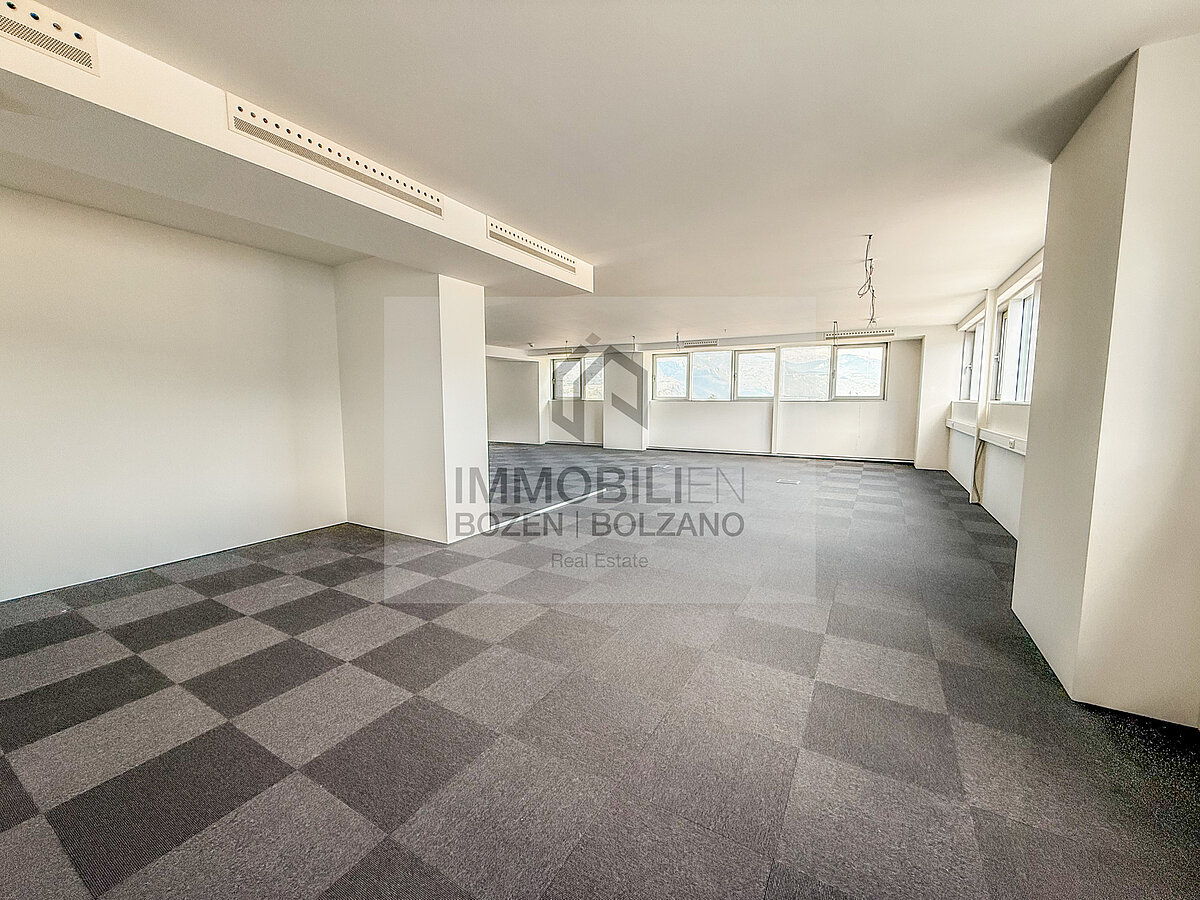 Zur Vermietung steht ein modernes, lichtdurchflutetes Büro im 7. Stock eines Gebäudes in Bozen Süd. Die Fläche von ca. 157 m² ist als offener, flexibel nutzbarer Openspace gestaltet und befindet sich in sehr gutem Zustand. Ein Personenaufzug ist vorhanden. Autostellplätze können bei Bedarf zusätzlich angemietet werden. Die Lage überzeugt durch eine ausgezeichnete Anbindung an das Straßennetz.