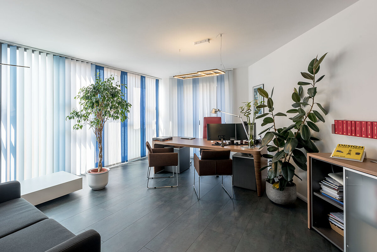 Das Büro wurde kürzlich renoviert, einschließlich der Installation von Sonnenschutzfolien sowie der Beseitigung architektonischer Barrieren. Die Räumlichkeiten sind den ganzen Tag über sehr hell und bieten einen offenen, angenehmen Ausblick.