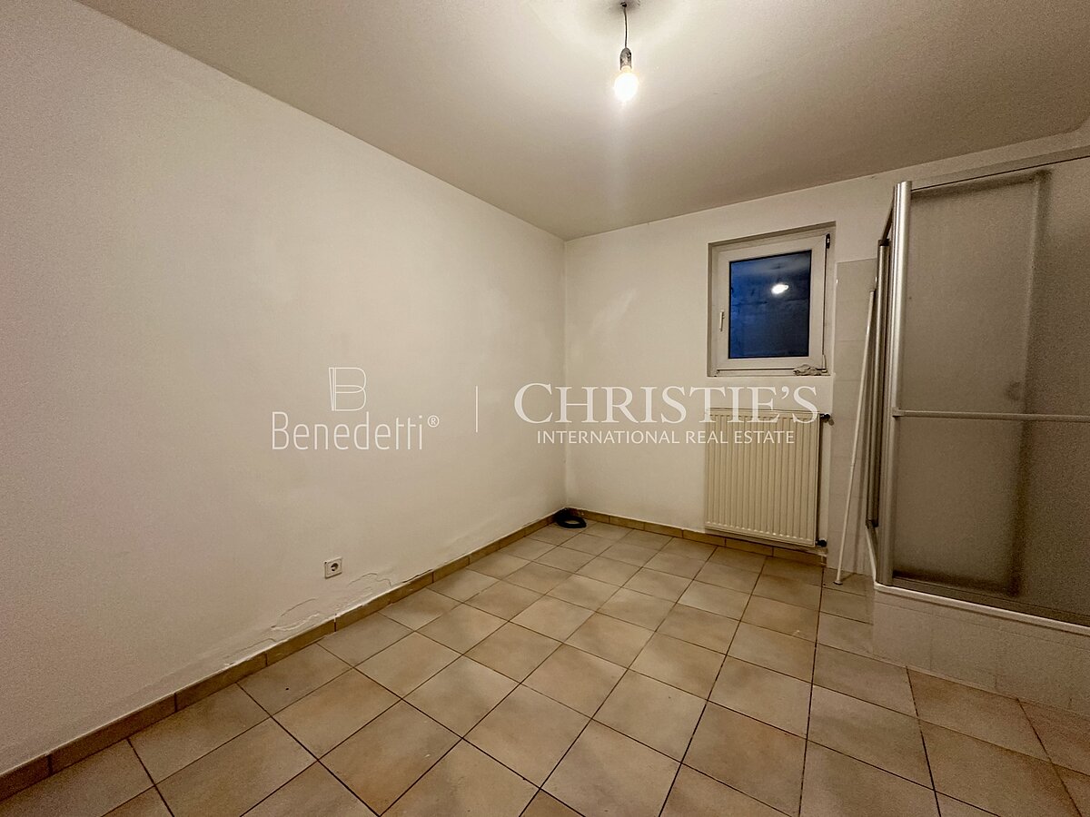 Im Untergeschoss befinden sich zwei geräumige Kellerräume, einer davon mit Dusche und Waschbecken ausgestattet. Ergänzt wird diese Ebene durch den Heizraum sowie einen direkten Zugang zur privaten Garage. Zusätzlich besteht ein weiterer Ausgang zu einem zweiten Stellplatz in der gemeinschaftlichen Garage.