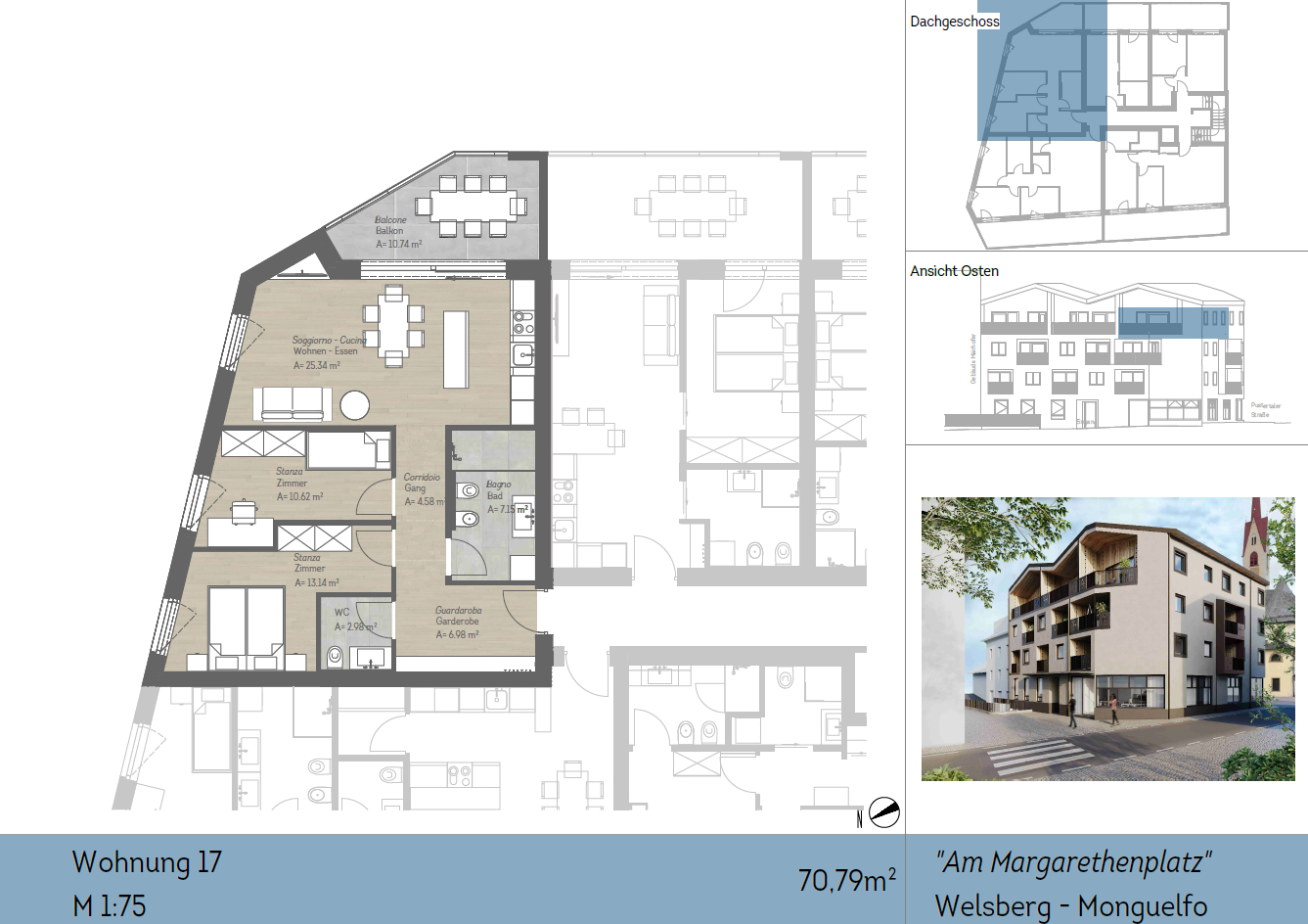 3-Zimmerneubauwohnung im Dachgeschoss mit Balkon und Dolomitenblick in Welsberg zum Verkauf - W17.
