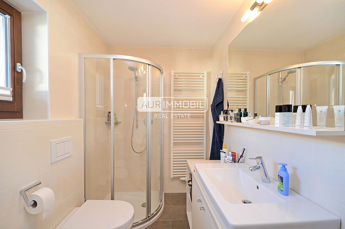 In schöner Lage in Luttach gelegen und ein Paar Gehminuten vom Zentrum entfernt befindet sich die geschmackvoll eingerichtete 3-Zimmerwohnung im letzten Stock, bestehend aus: einer Garderobe, einer gemütlichen, modern eingerichteten Wohnküche, zwei Schlafzimmern, einem Bad mit Fenster sowie eine große Terrasse, die rundum verläuft und welche nicht nur von der Wohnküche, sondern auch von den beiden Schlafzimmern direkt erreichbar ist.