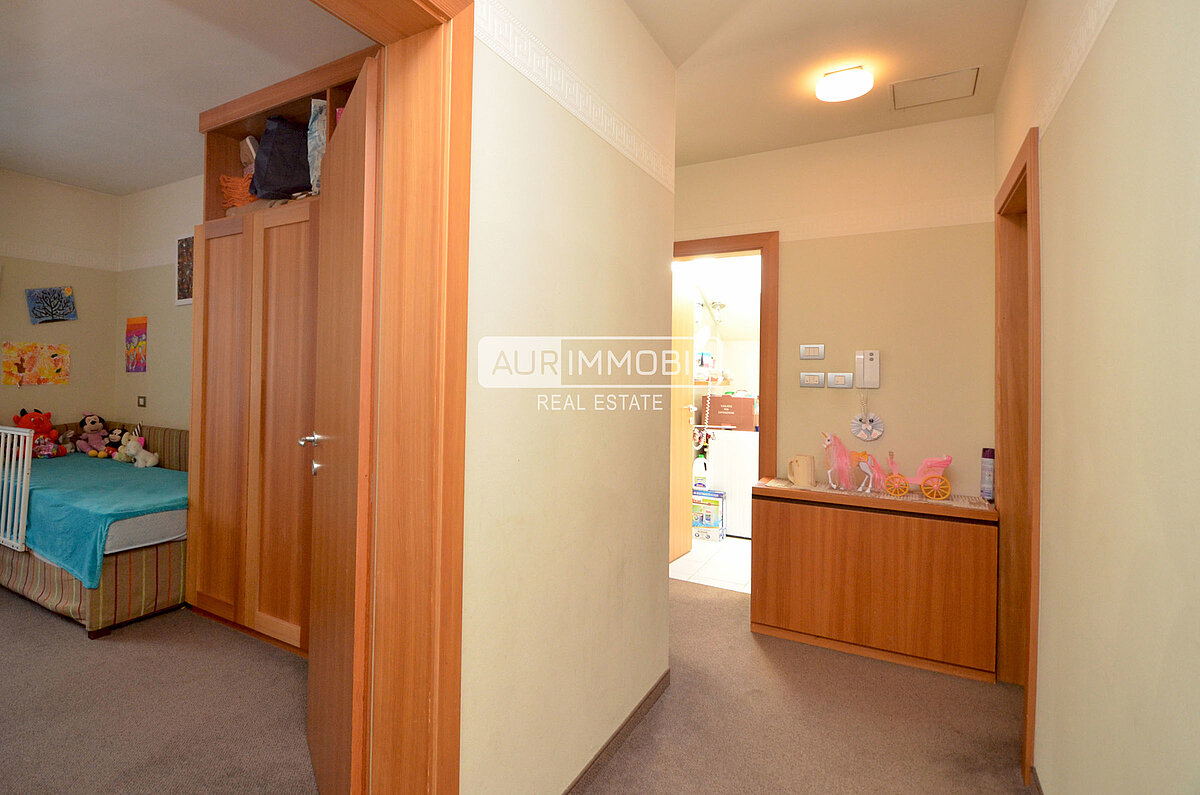 Diese vollständig möblierte Dreizimmerwohnung im zweiten Stock mit Aufzug punktet mit einem schönen freien Ausblick - selbst die Burg Taufers blitzt zwischen den Bäumen hervor.
