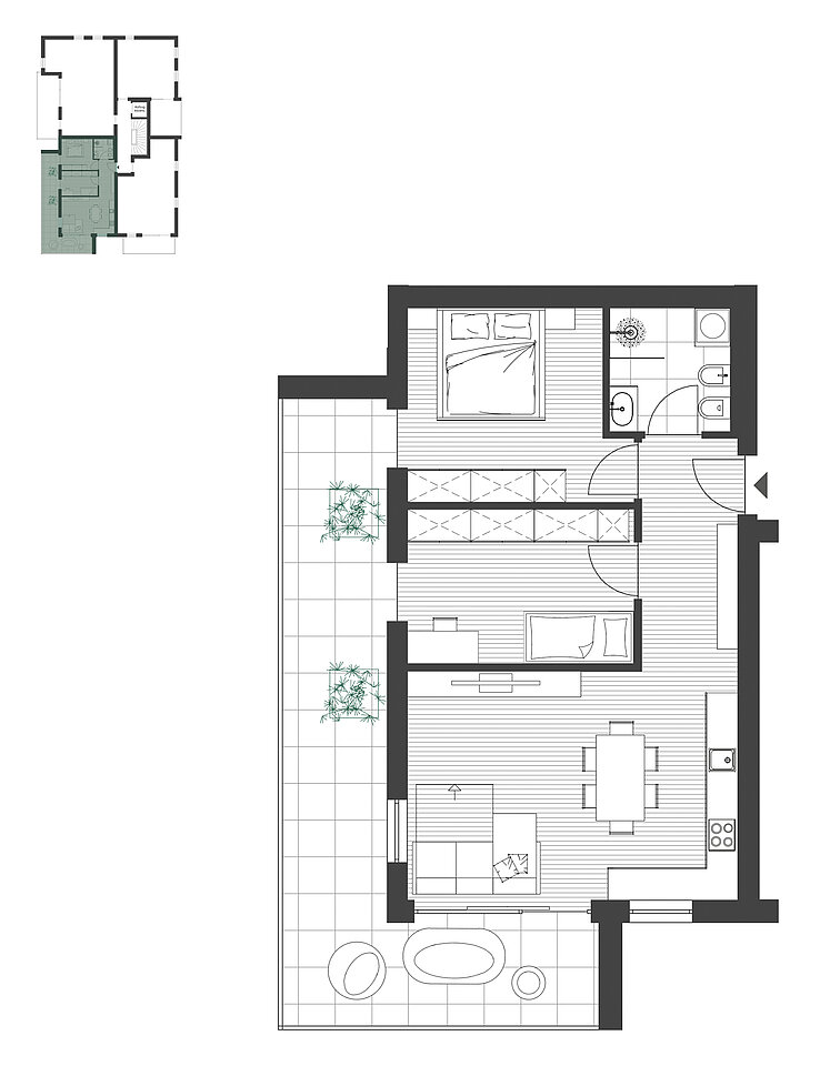 Ein besonderes Highlight ist der großzügige Balkon, der einen schönen Ausblick bietet. Die Wohnung wird vollständig möbliert verkauft, sodass Sie sofort einziehen können. Ein praktischer Kellerraum sowie ein Garagenstellplatz sind bereits im Kaufpreis inkludiert.