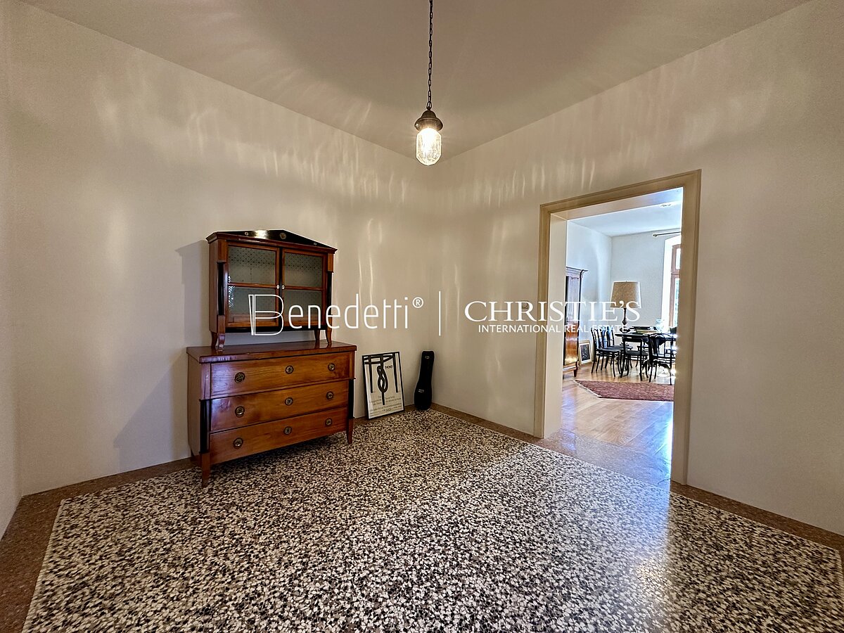 3. Stock – Stilvolles Entree mit elegantem Terrazzo-Boden, drei großzügige Zimmer mit Blick in den historischen Park sowie ein Tages-WC. Zudem gibt es ein Badezimmer im Rohbauzustand. Die Nettofläche beträgt 89 m².