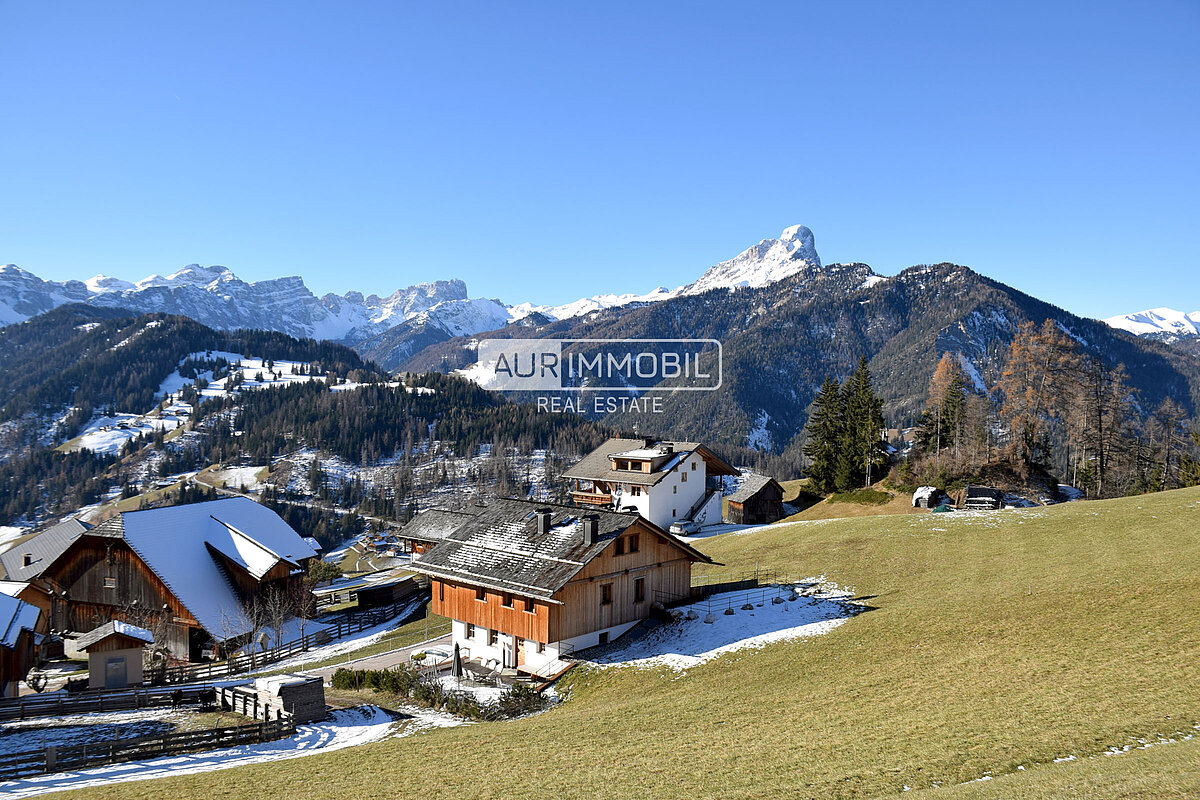 Manchmal wird ein Wohntraum Wirklichkeit – und genau das ist hier der Fall. Les Viles Ciampei wurde für anspruchsvolle Genießer geschaffen und wird Sie garantiert begeistern. Dieses historische Anwesen liegt auf 1.500 Metern Höhe an den sonnigen Hängen des Gadertals. Der Blick reicht in alle Richtungen und eröffnet ein atemberaubendes Panorama auf die berühmtesten Gipfel der Region – ein Anblick, der verzaubert. Das elegante Luxusapartment beeindruckt mit großzügigen Räumen und einem eigenen Wellnessbereich. Modernste Technik wie eine vollständige elektrische Abschirmung und ein Smart-Home-System sorgen für höchsten Wohnkomfort. Hier wird Ihr Traum vom perfekten Zuhause wahr.