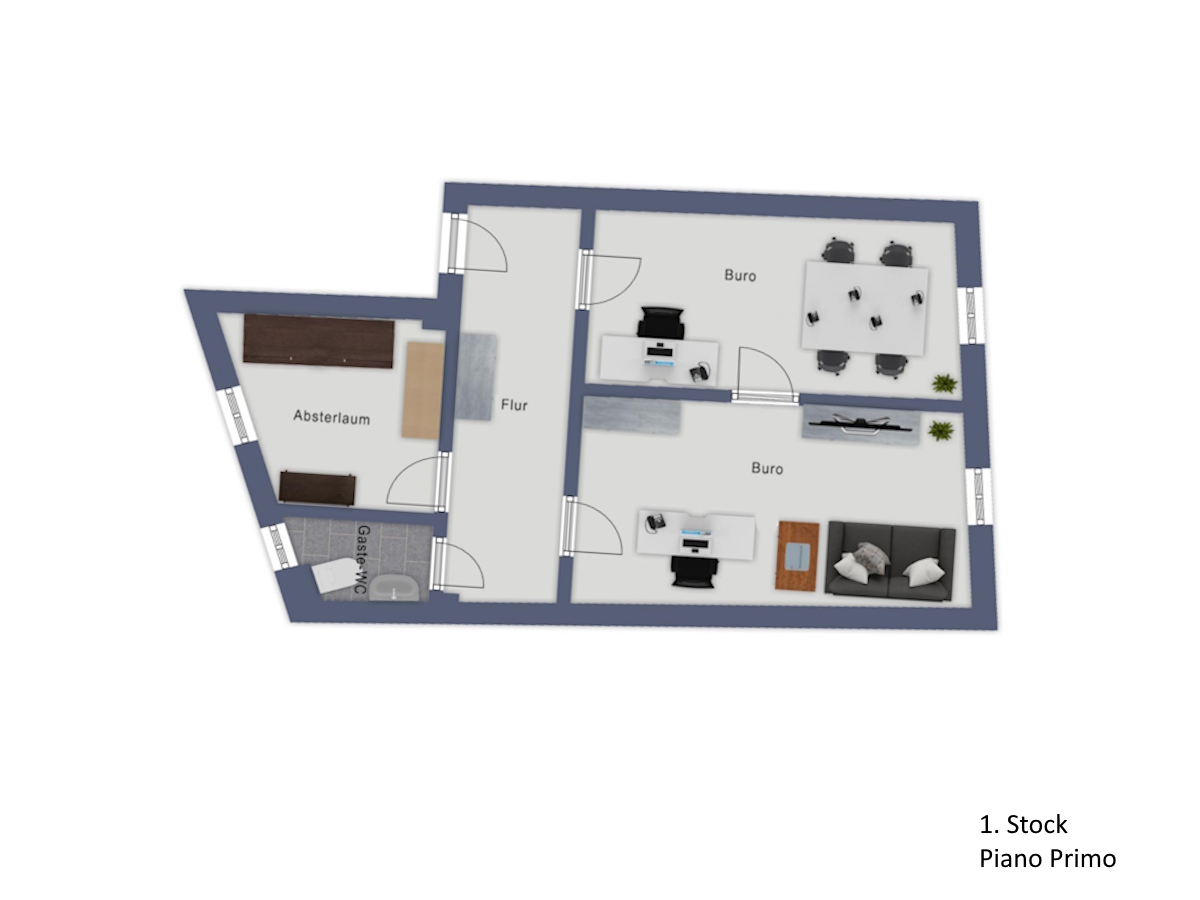 Das Büro befindet sich im 1. Stock eines eleganten und gut gepflegten Altbau.