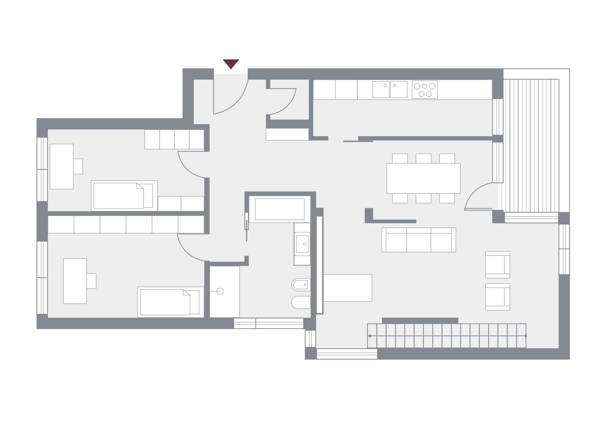 Die Wohnung wurde im Jahr 2018 hochwertig saniert und überzeugt mit einer durchdachten Raumgestaltung. Das Herzstück bildet zweifellos der offene, lichtdurchflutete Wohnbereich, der sich aus einem großzügigen Wohnzimmer und dem angrenzenden Essbereich zusammensetzt und eine einladende Atmosphäre schafft und zu geselligen Abenden einlädt. Die stilvolle, abgetrennte Küche ist modern ausgestattet und stilvoll möbliert – ein idealer Ort zum Kochen und Genießen. Ein kleiner Balkon ergänzt diesen Bereich und bietet einen ruhigen Platz im Freien.