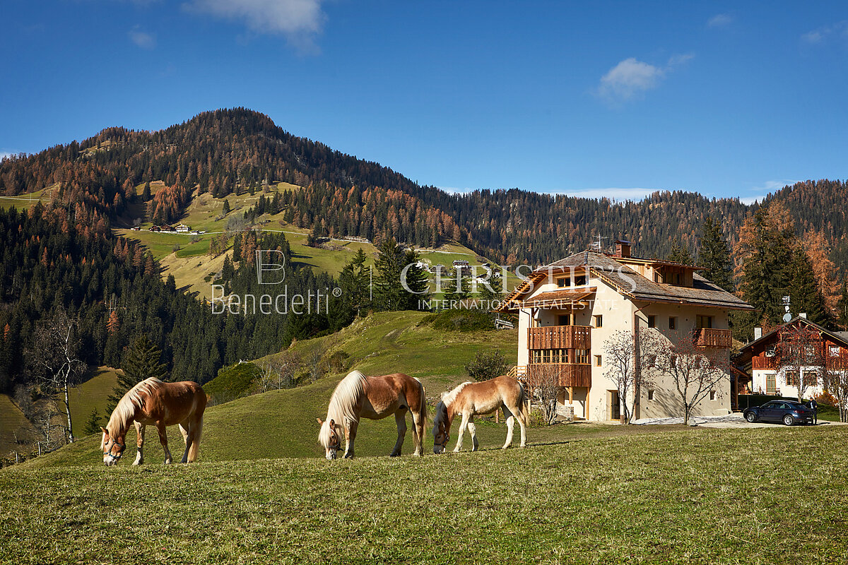 Ein einzigartiges Chalet, in dem Geschichte, Tradition und zeitgemäßer Komfort zu einem exklusiven Wohnerlebnis im Herzen der Dolomiten verschmelzen.