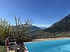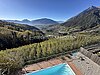 Genießen Sie im beheizbaren Salzwasserpool den freien Panoramablick ins Tal und die umliegende Bergwelt. Ein kleiner Steinstrand lädt zum Entspannen ein, während die neue Sauna und die Option einer Outdoor-Dusche das Wellness-Erlebnis perfekt abrunden. Ein Ort, der Erholung und Natur vereint.