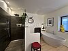 Das Erdgeschoss öffnet sich mit einem einladenden Eingangsbereich, der direkt zur modernen Küche und der gemütlichen Stube mit anschließender Terrasse führt. Der offene Wohn- und Essbereich ist das Herzstück des Hauses und lädt mit einem klassischen Holzofen und einem sonnigen Balkon zum Verweilen ein. Direkt daneben liegt das Hauptschlafzimmer mit Ankleide und einem stilvollen Bad en Suite, das höchsten Komfort bietet.
