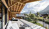 Im obersten Geschoss öffnet sich der Wohnbereich – ein warmer und geselliger Raum mit Wohnzimmer, Essbereich und offener Küchenzeile. Das Wohnzimmer wird durch einen stimmungsvollen Kamin bereichert, der an Winterabenden eine besonders gemütliche Atmosphäre schafft, sowie durch ein praktisches Gäste-WC. Große Fenster sorgen für viel Tageslicht und ermöglichen einen herrlichen Blick auf das alpine Panorama – die perfekte Atmosphäre für gesellige Stunden. Vom Wohnbereich aus gelangt man auf eine großzügige Terrasse, die sich ideal eignet, um den Blick auf die Berge zu genießen und angenehme Momente im Freien zu verbringen.