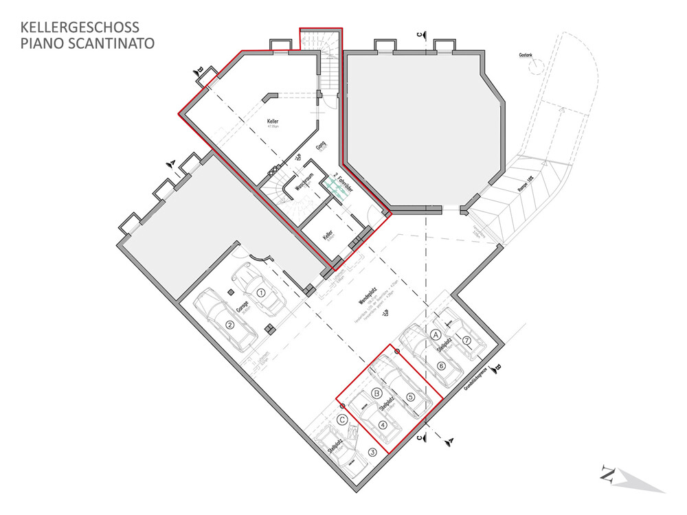 KELLERGESCHOSS Großzügige Doppelgaragenbox, Werkstatt/Keller, Fahrraddepot, Waschraum und Hobbyraum – mit separatem Zugang.Preis Doppelgaragenboxen: € 60.000
