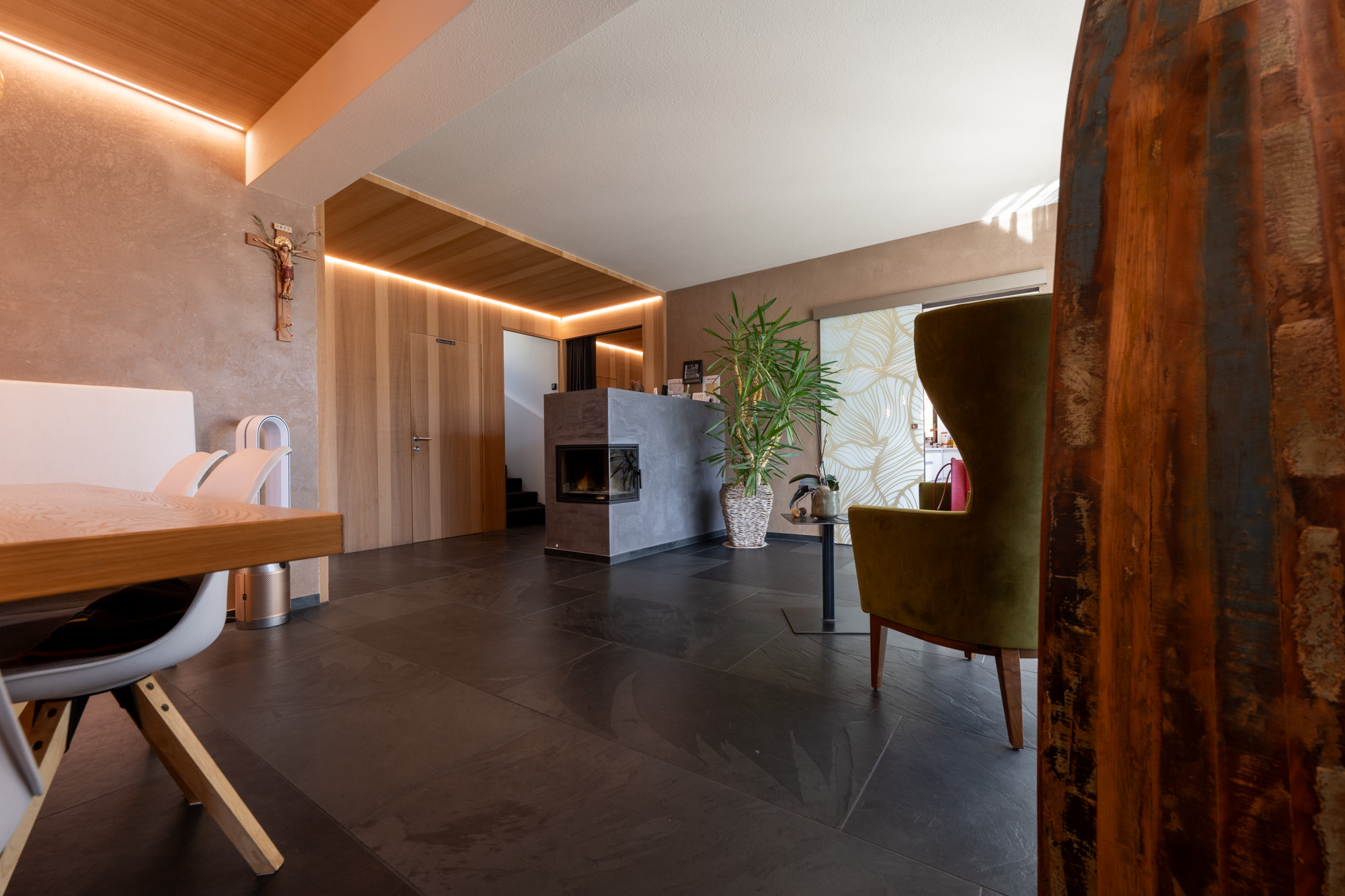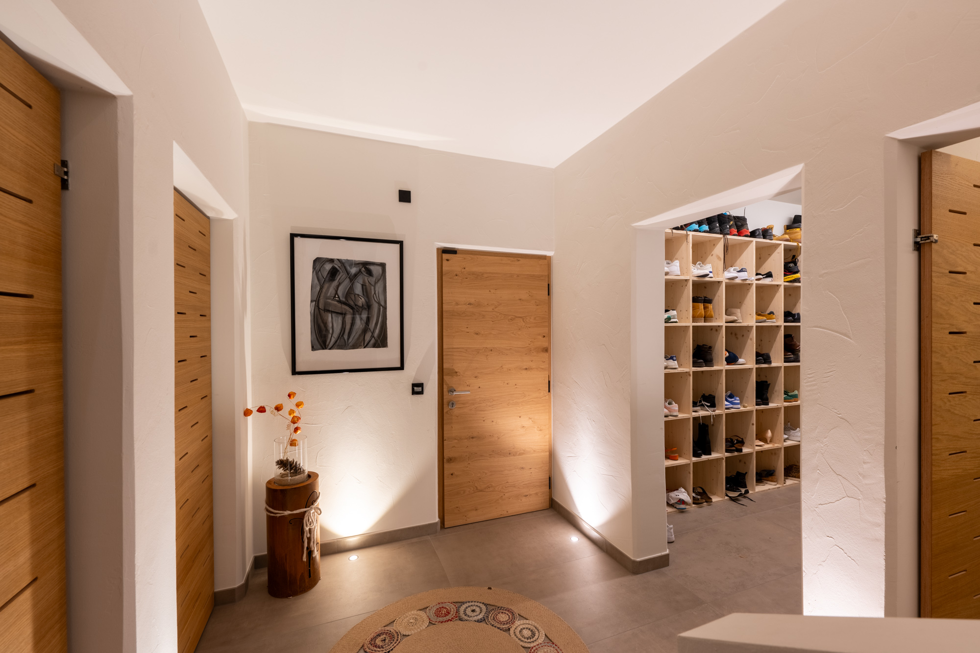 - Erdgeschoss: Windfang, Tages WC, Garderobe, Wohnzimmer, Küche, Esszimmer, Büro, Abstellraum, Fitnessraum, Terrasse;