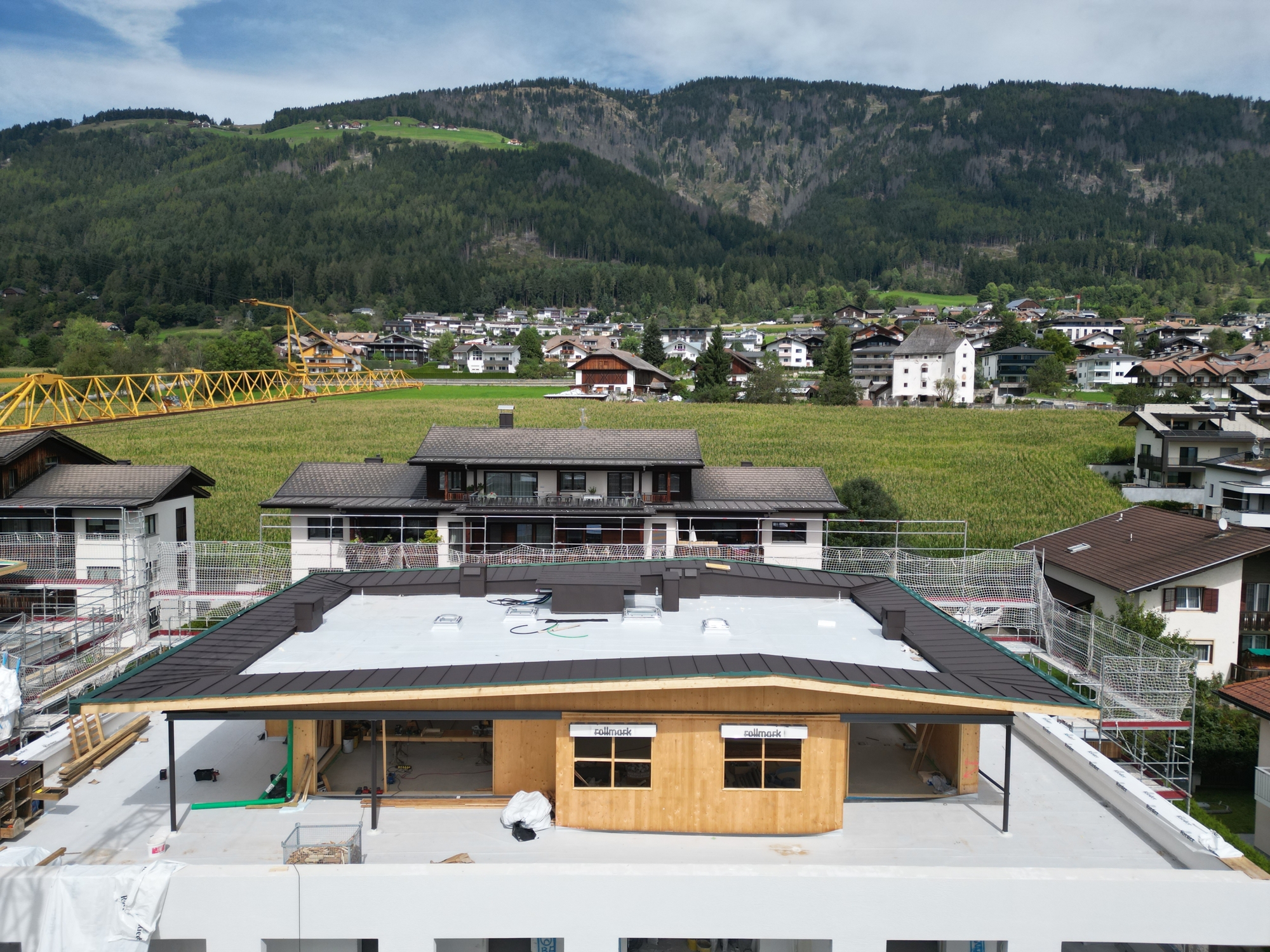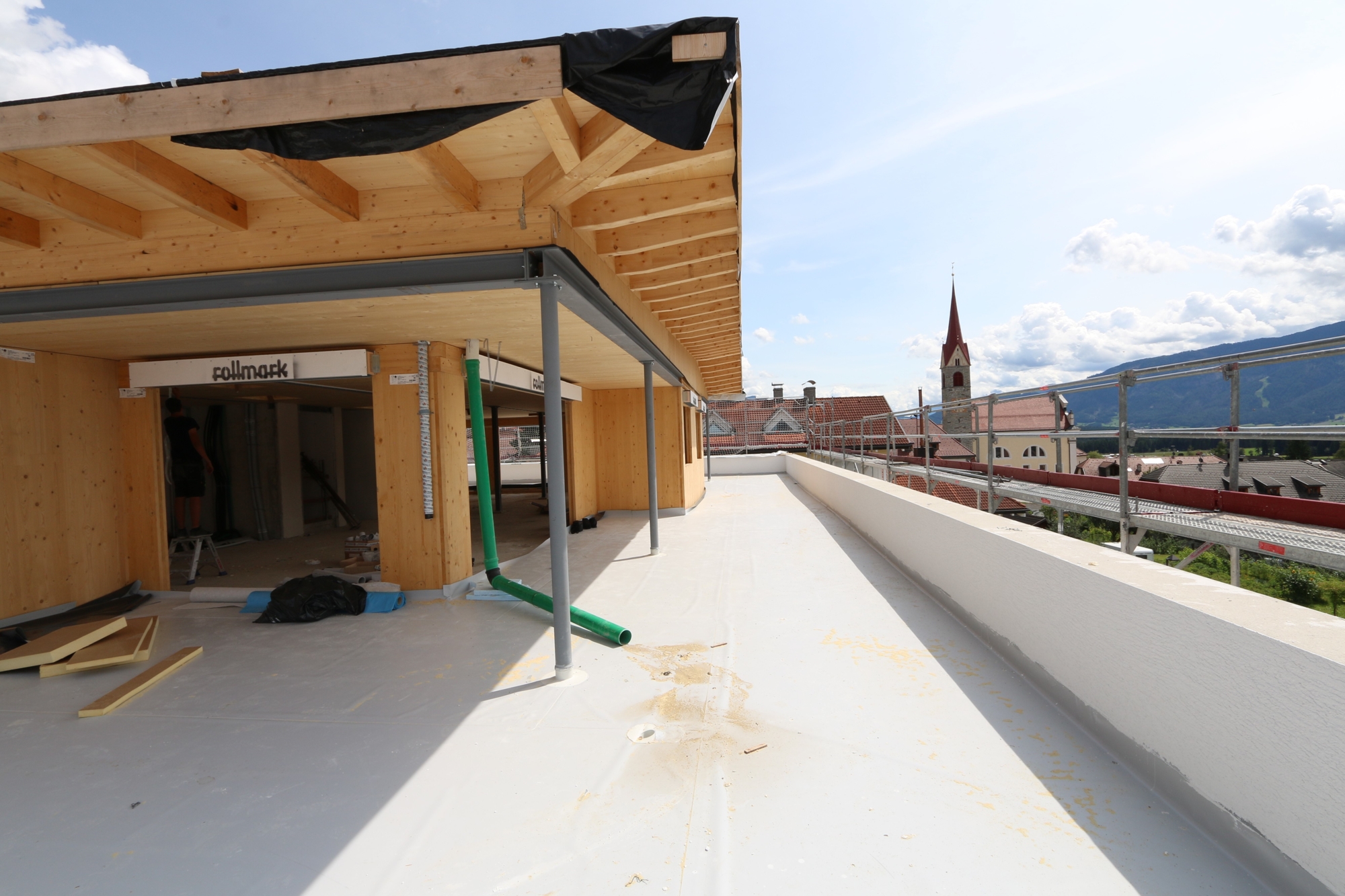 Die private Dachterrasse des Penthouses ist ein wahres Highlight. Von hier aus können Sie die atemberaubende Aussicht auf die umliegende Bergwelt genießen – perfekt für Sonnenuntergänge oder gesellige Abende unter dem Sternenhimmel. Ein angemessener Sichtschutz auf der West- und Nordseite in Form von geschmackvollen Blumentrögen sorgt dabei für Privatsphäre und ein angenehmes Ambiente.