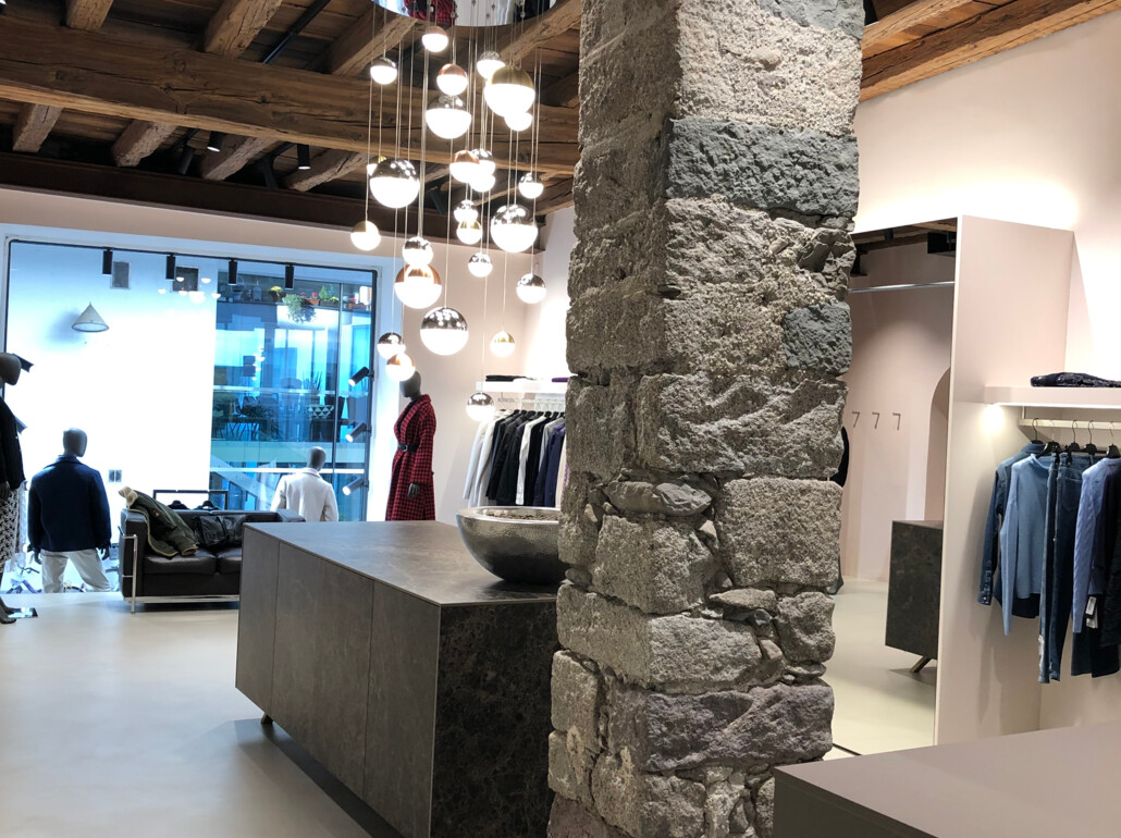 Das Geschäft liegt in der Laubengasse, einer der bekanntesten und meistfrequentierten Einkaufsstraßen in Meran. Die historische Arkadenstraße verbindet Tradition, Tourismus und exklusiven Einzelhandel.