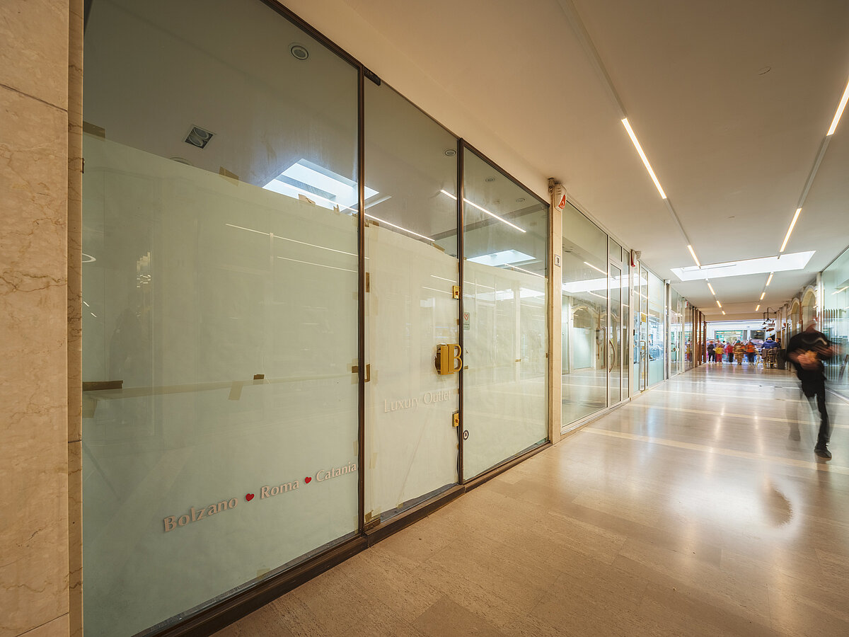 Castellanum bietet zur Vermietung ein charmantes Geschäft im prestigeträchtigen historischen Zentrum von Bozen, gelegen innerhalb der renommierten Galleria Europa.