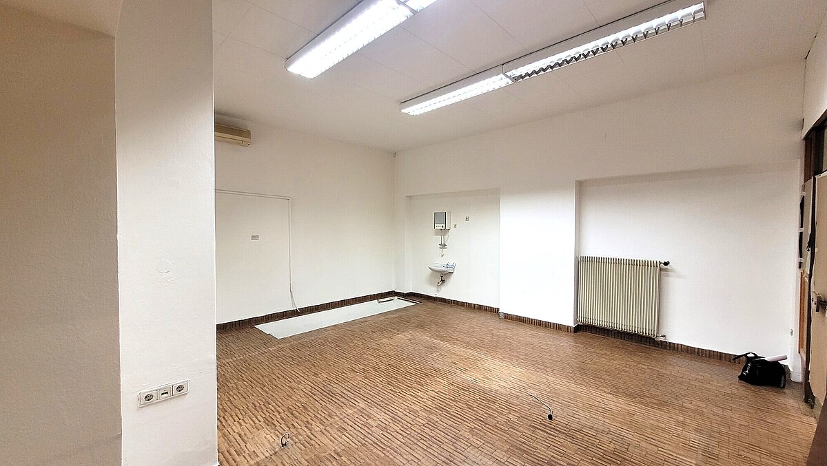 Wir vermieten ein Geschäftslokal (ca. 46 Qm Geschäft) mit Schaufenster und darunterliegendem Magazin (ca. 55 Qm Bruttofläche). Ein Wasseranschluss ist vorhanden.