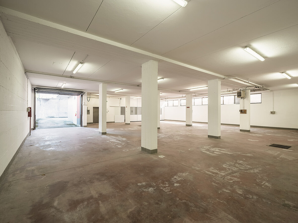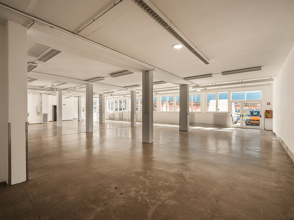 - Erdgeschoss (ca. 370 m² - H ca. 3,40 m): Werkstatt mit Lager und Produktion. Derzeit in offener Raumkonfiguration, bietet es maximale Flexibilität bei der Raumaufteilung.