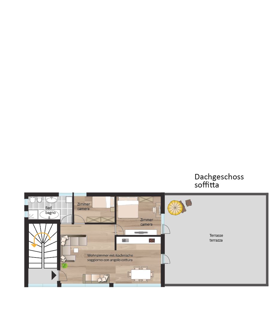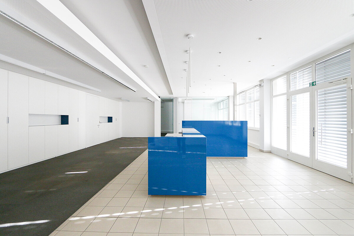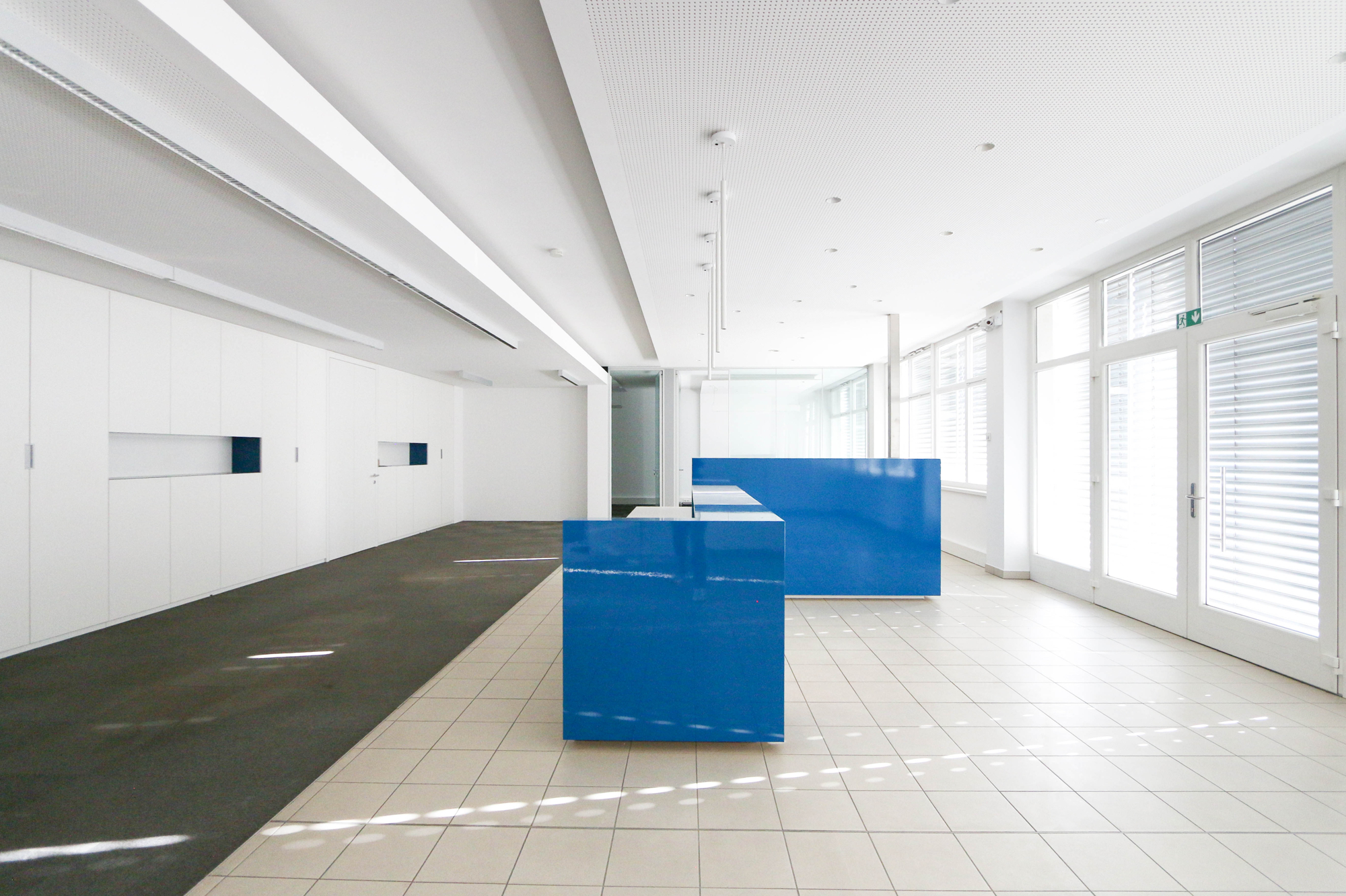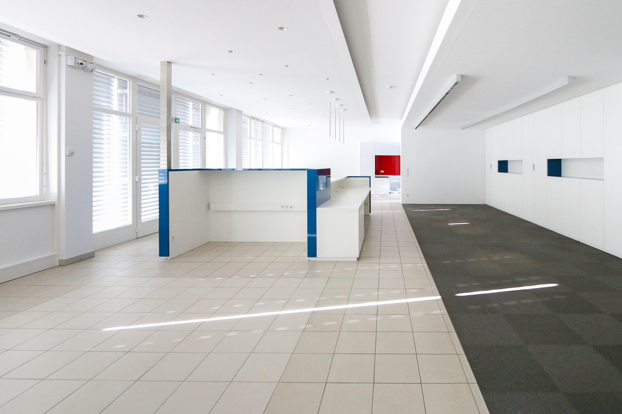 Im 1. Obergeschoss befindet sich ein weiteres Büro mit 165m², welches noch auszubauen ist. Im 2. Obergeschoss befindet sich eine neuwertige Dienstwohnung mit Wohnküche, zwei Schlafzimmern, Bad und einer Dachterrasse.