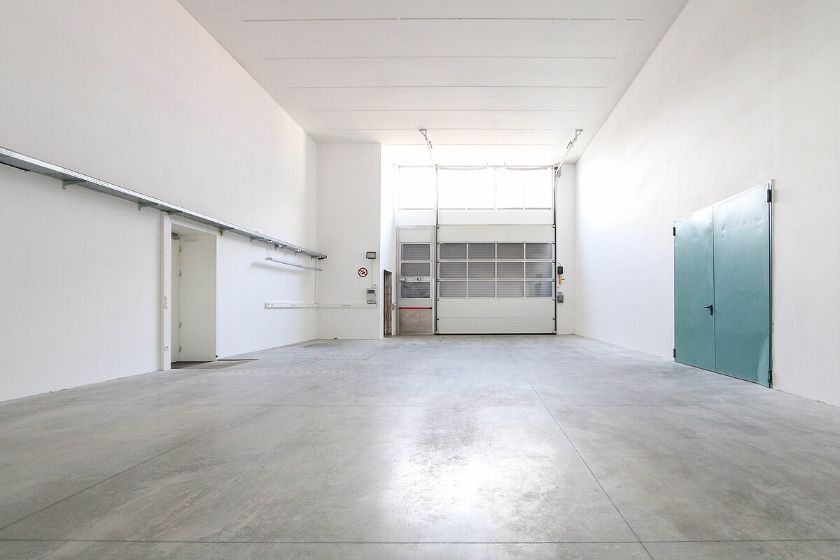 Im Erdgeschoss befinden sich zwei Lagerhallen mit insg. 323m². Die Hallen haben eine Höhe von 6,60m, sind über zwei elektrische Rolltore erschlossen, ebenerdig befahrbar, und teilweise beheizt.