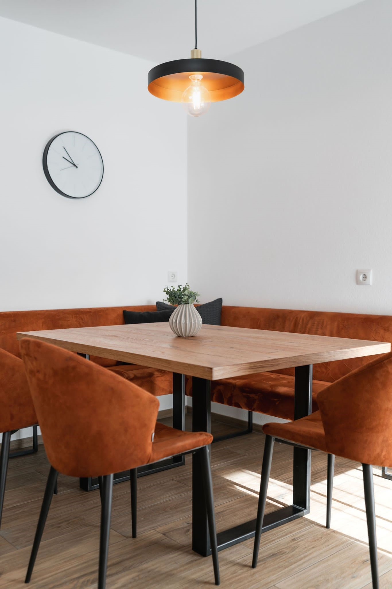 Die separate Küche mit Essbereich ist nicht nur funktional, sondern auch ästhetisch ein Highlight: Ausgestattet mit maßgefertigten Einbaumöbeln, hochwertigen Geräten und einer stilvollen Essgarnitur lädt sie sowohl zu geselligen Abenden als auch zu entspannten Familienmahlzeiten ein. Jedes der drei Schlafzimmer wurde mit qualitativen Möbelstücken eingerichtet, die ein elegantes und zugleich behagliches Wohnambiente schaffen. Zwei moderne, hochwertig ausgestattete Bäder sowie ein praktischer Abstellraum runden das Raumangebot ab. Die Nettofläche von knapp 110 m² bietet reichlich Platz für die ganze Familie, während zwei großzügige Terrassen den Wohnraum ins Freie erweitern und perfekte Orte zum Entspannen darstellen.