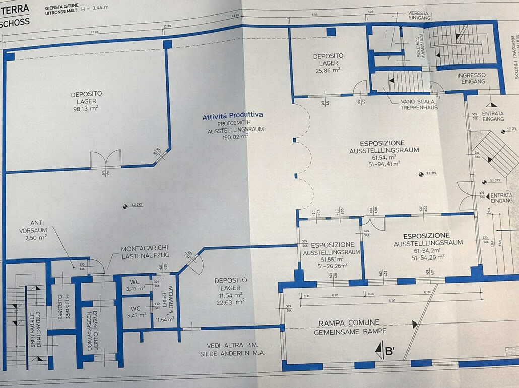 Wir vermieten eine großzügige Gewerbefläche in bester Sichtlage von Bozen, ideal geeignet als Ausstellungsraum, Bürofläche oder Showroom.