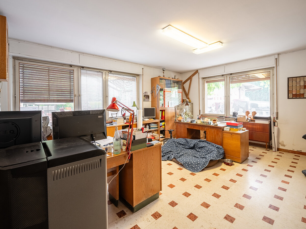 -Ein gemischt genutztes Gebäude, bestehend aus einem Geschäft, Büros und zwei Dienstwohnungen.