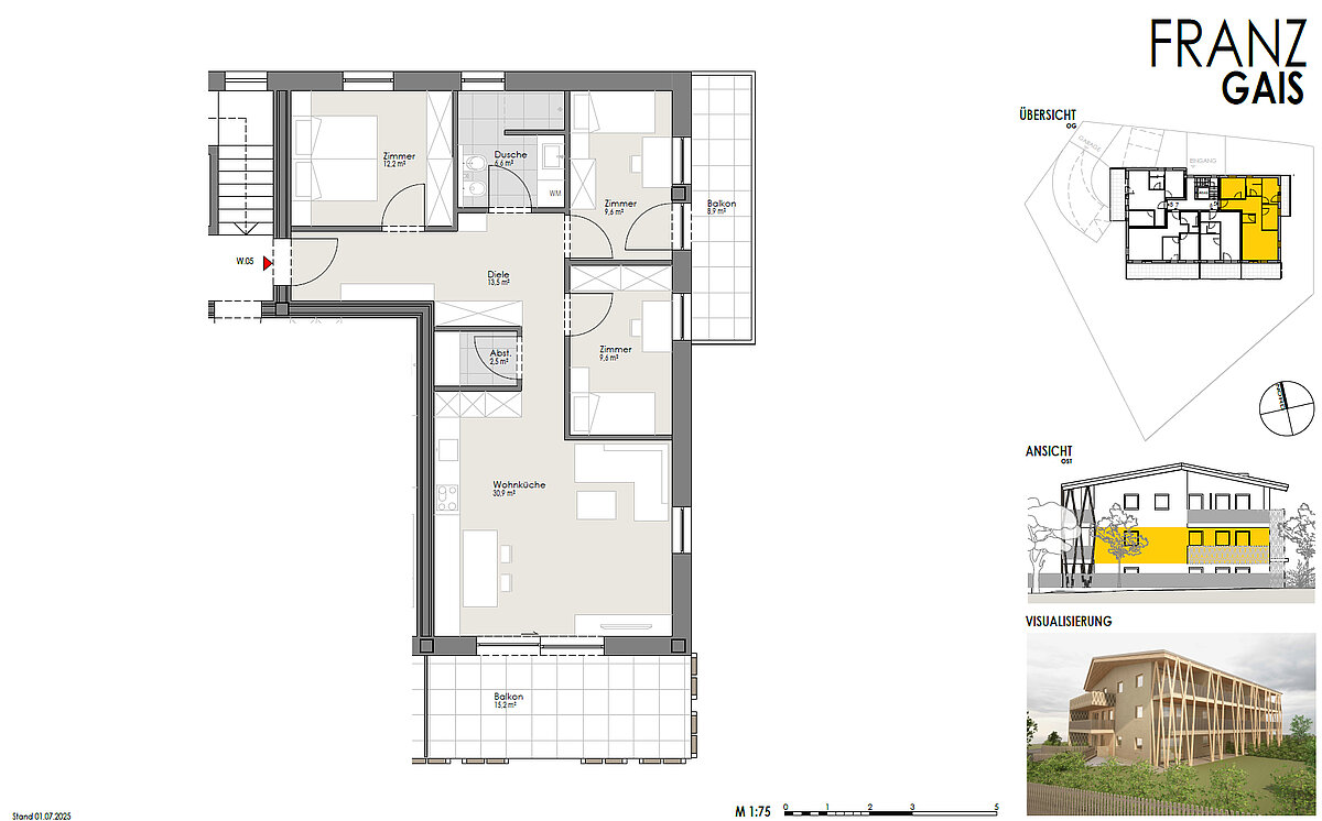 4-Zimmerwohnung mit 2 Balkonen im Neubauprojekt "Franz" in Gais - W5