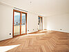 Helle, großzügige Räume prägen diese 3-Zimmer-Wohnung, die einen Wohnbereich mit Zugang zur überdachten Loggia, ein Schlafzimmer mit eigenem Bad mit Fenster, ein weiteres Schlafzimmer – beide mit Balkonzugang – sowie ein Gäste-WC umfasst.